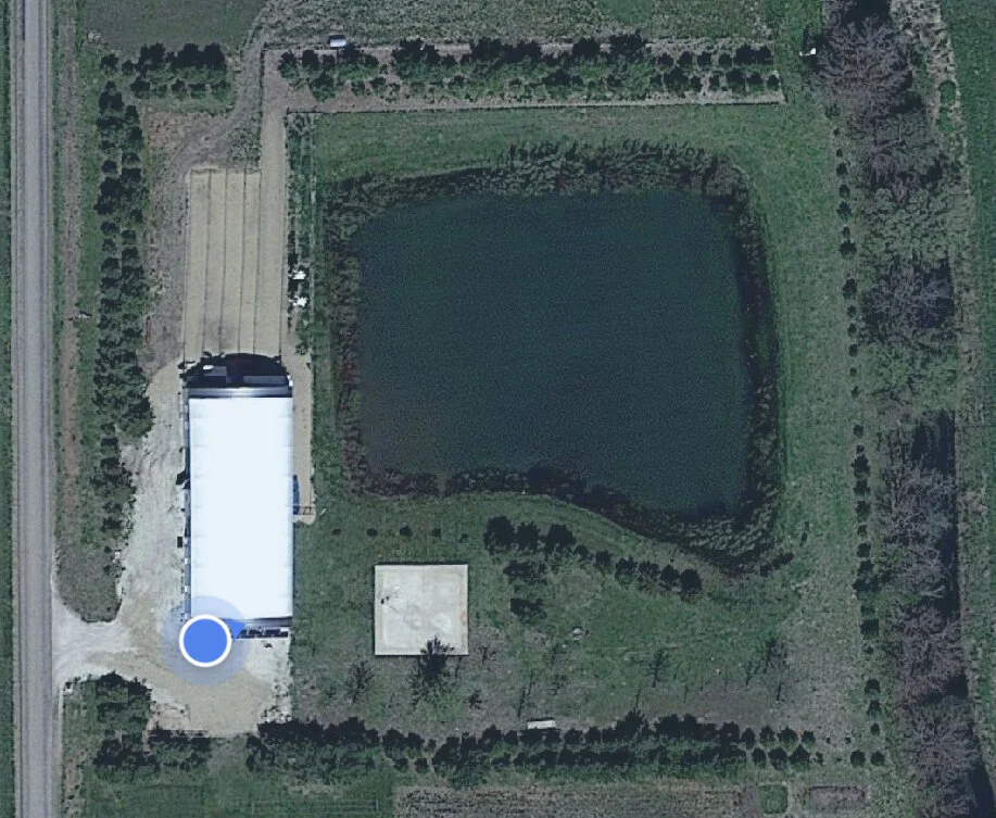 This is a top down view of where our beautiful dogs get to live. They have a nice pond and many trees. They’re always welcome to go inside or out with their doggy doors. Inside is air conditioned and heated with automatic waters.