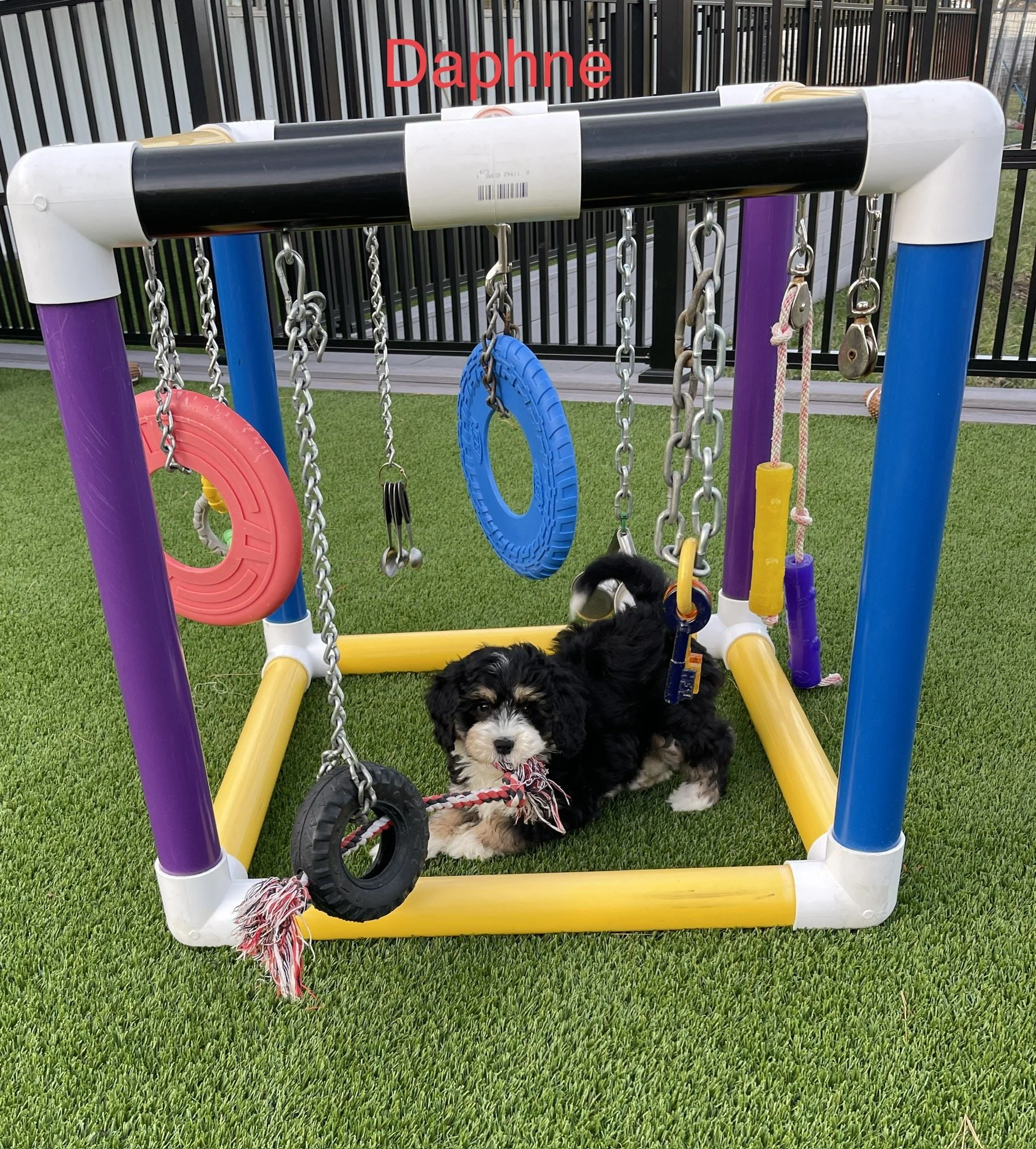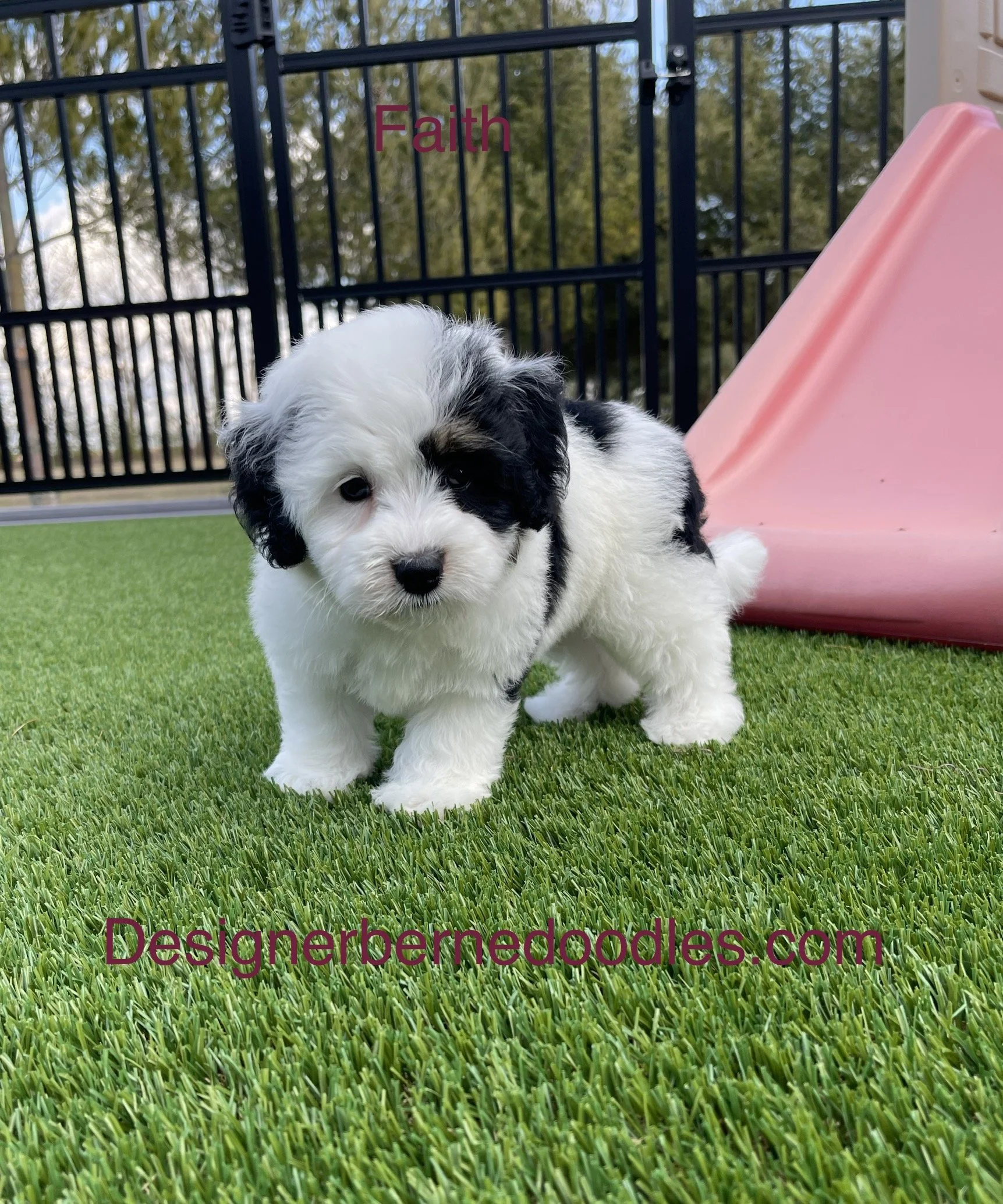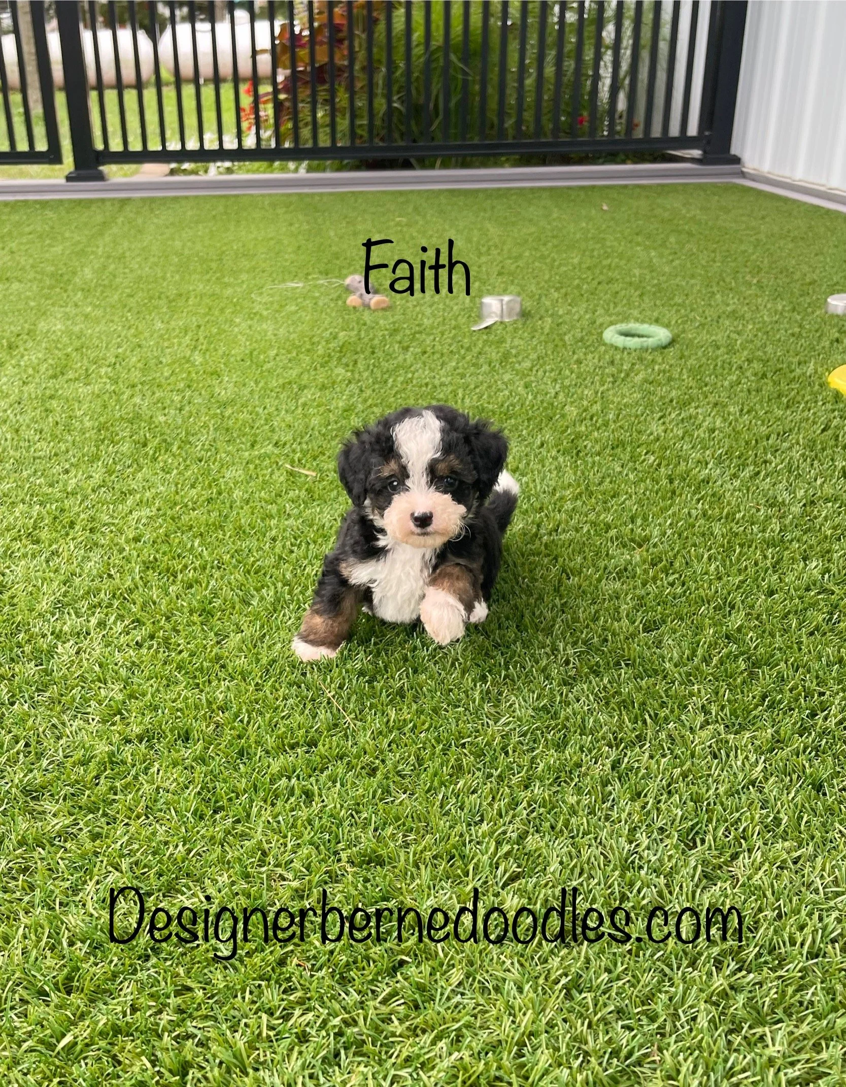 Faith 3401 has found her forever home with Hannah Heise & Ryan Fatemi from Del Ray CA , She is a gorgeous Tri Color F1b Tiny / Toy Bernedoodle born Saturday June 21st 2025, She will be 8 weeks old and ready to go home as early as Saturday August 16th. Her parents are Daisy & Prince. Daisy weighs 40lbs and Prince weighs 10lbs.
