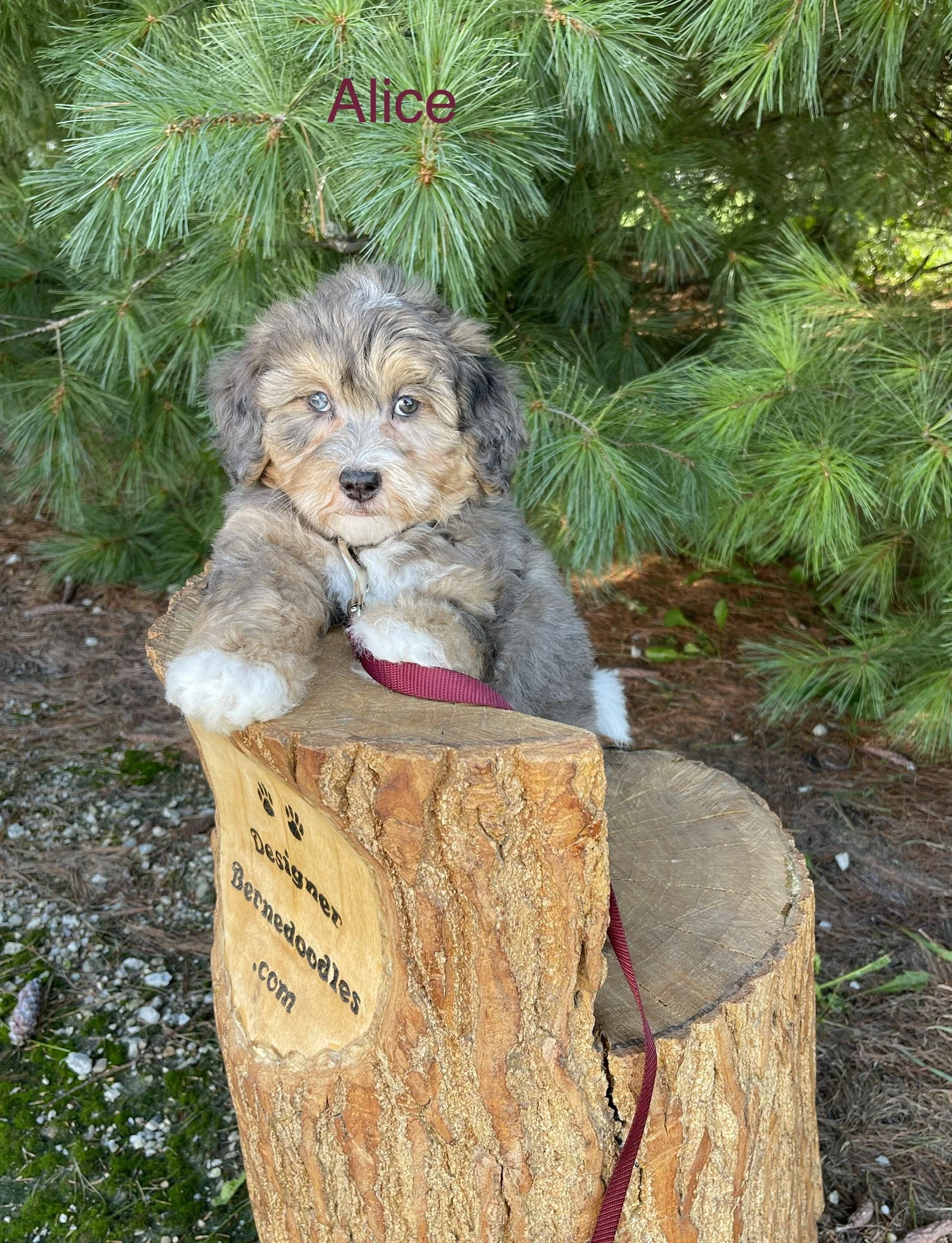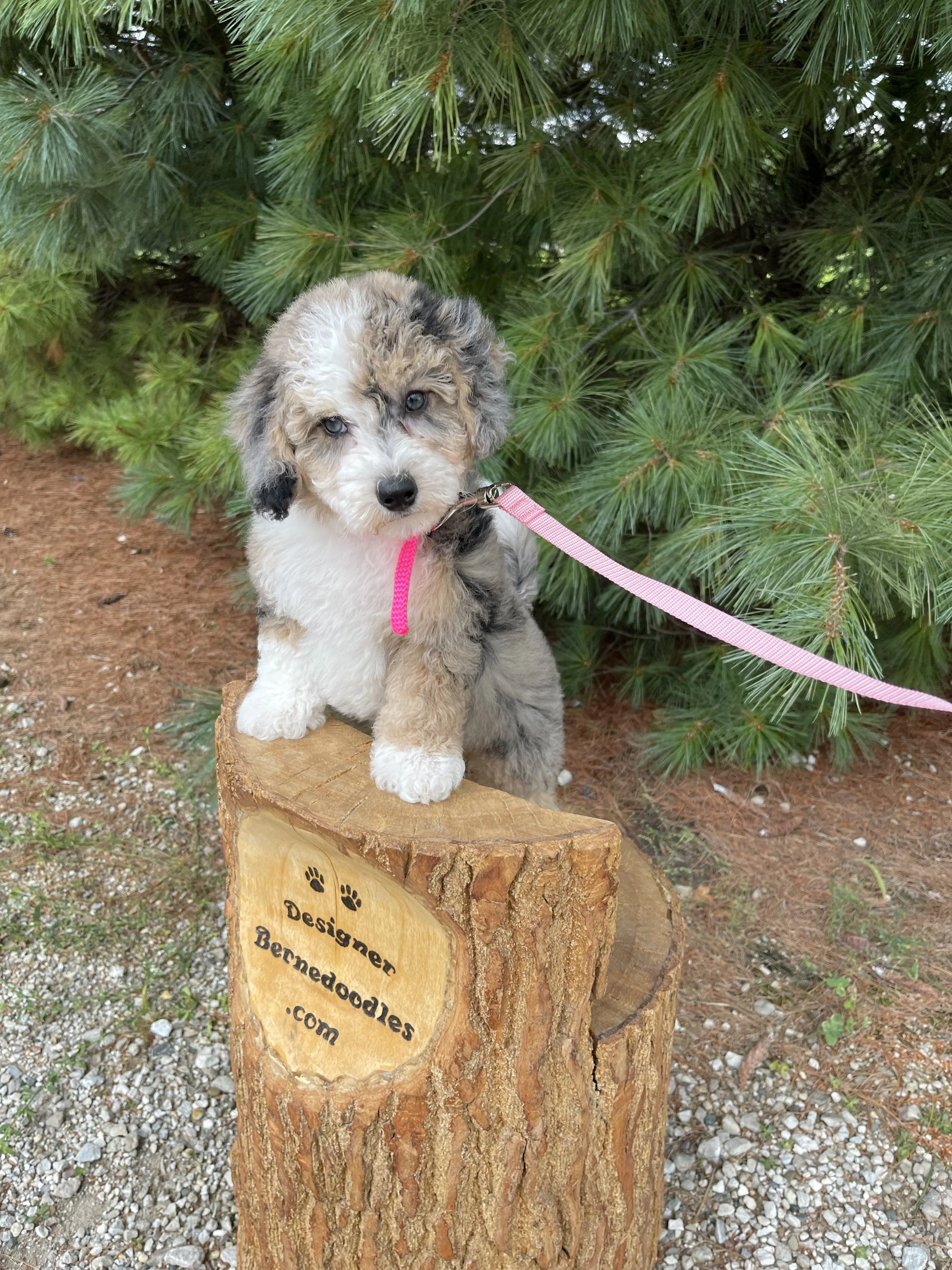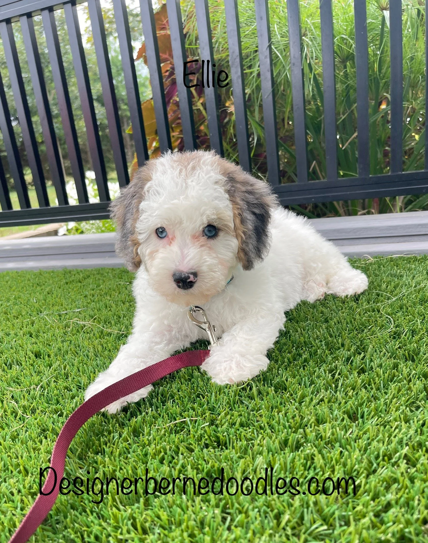 Ellie 118 has found her forever home with Carla Salvatierra & family from Gaithersburg MD, She is a gorgeous Blue Merle & White F1b Tiny / Toy Bernedoodle born Saturday June 21st 2025, Ellie is ready to go to her Forever home as early as Today!!. Her parents are Daisy & Prince. Daisy weighs 40lbs and Prince weighs 10lbs. Estimated weight is between 20 & 25 Lbs full grown.