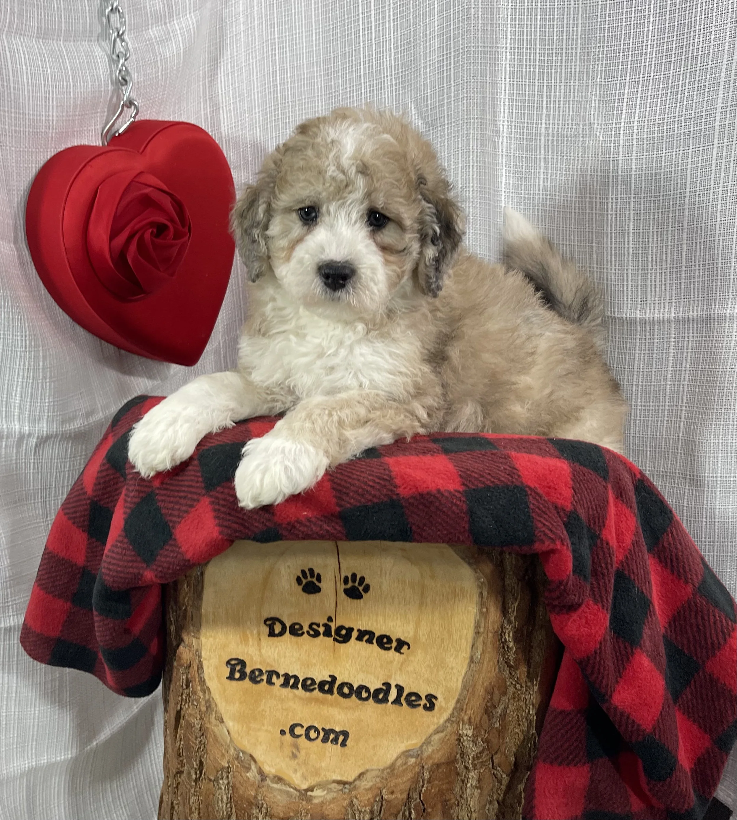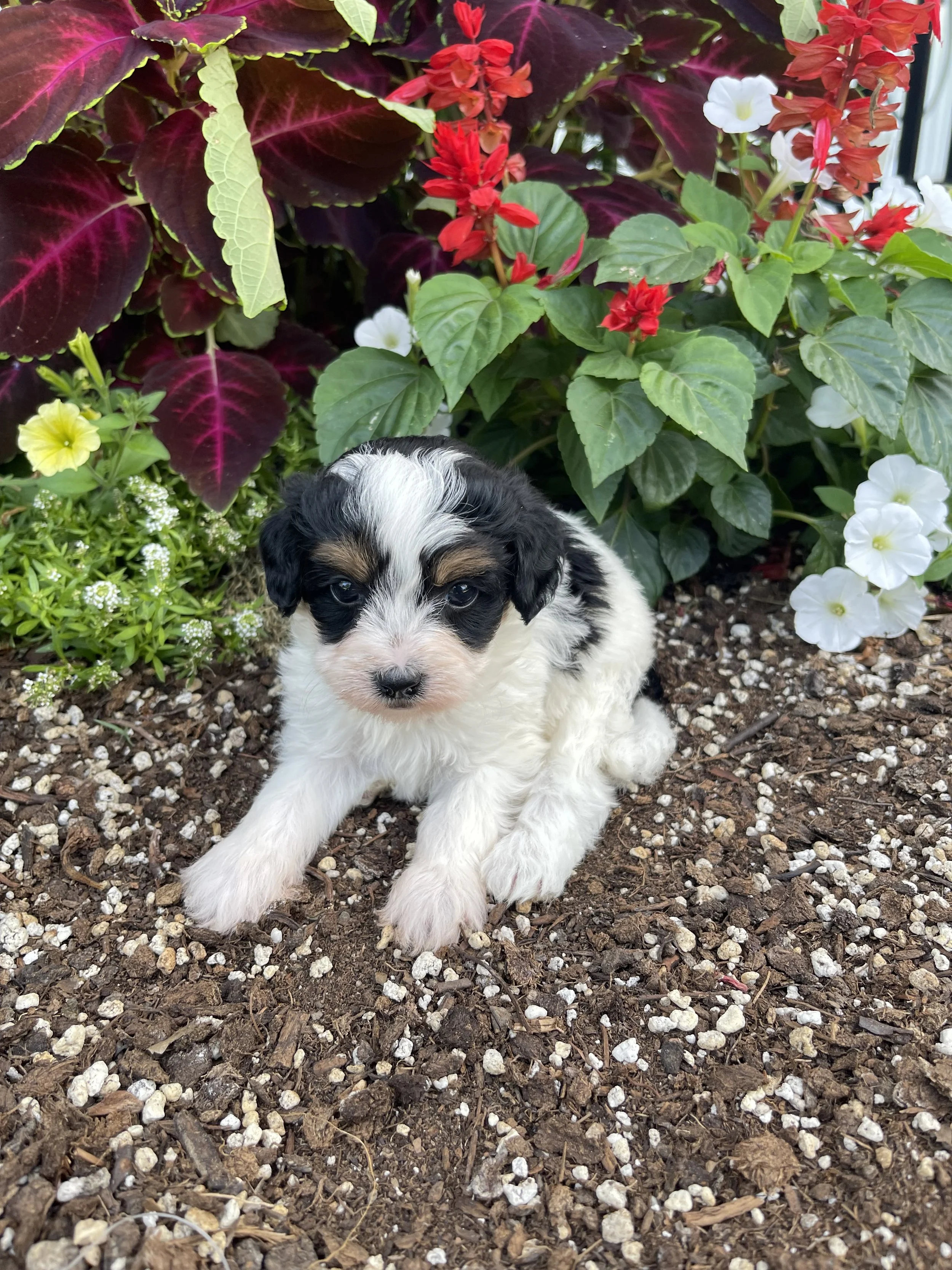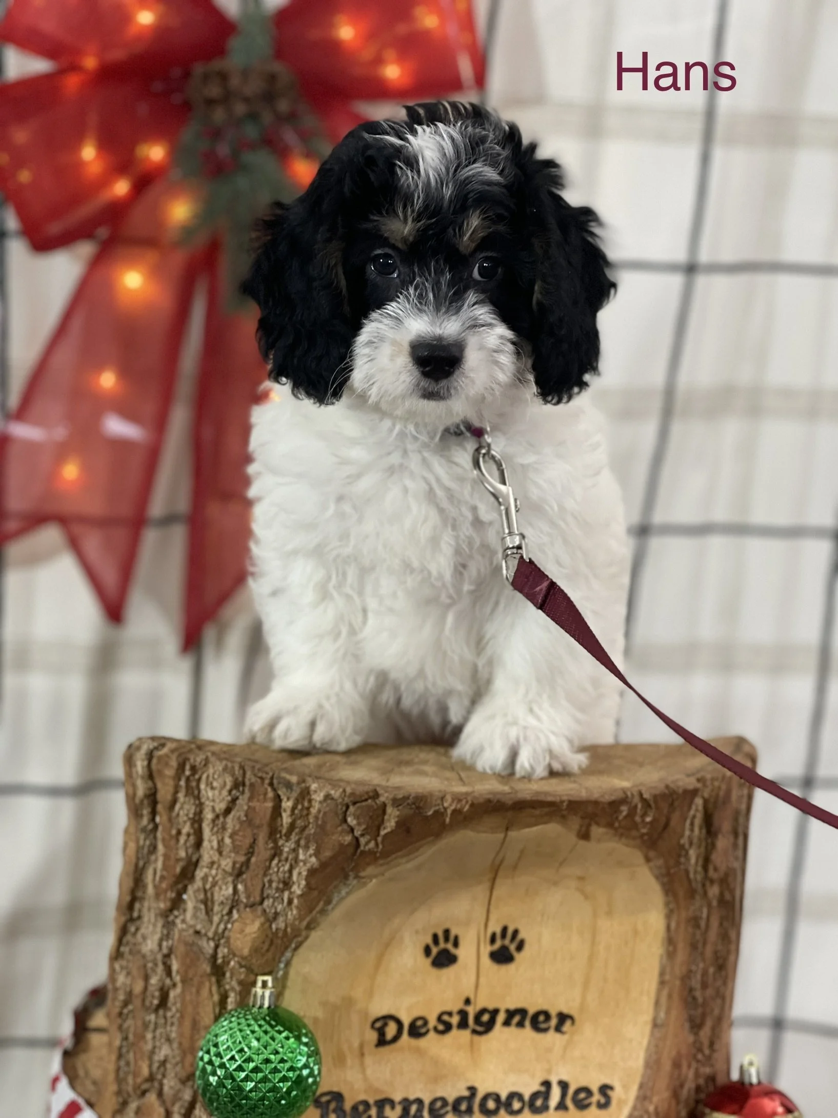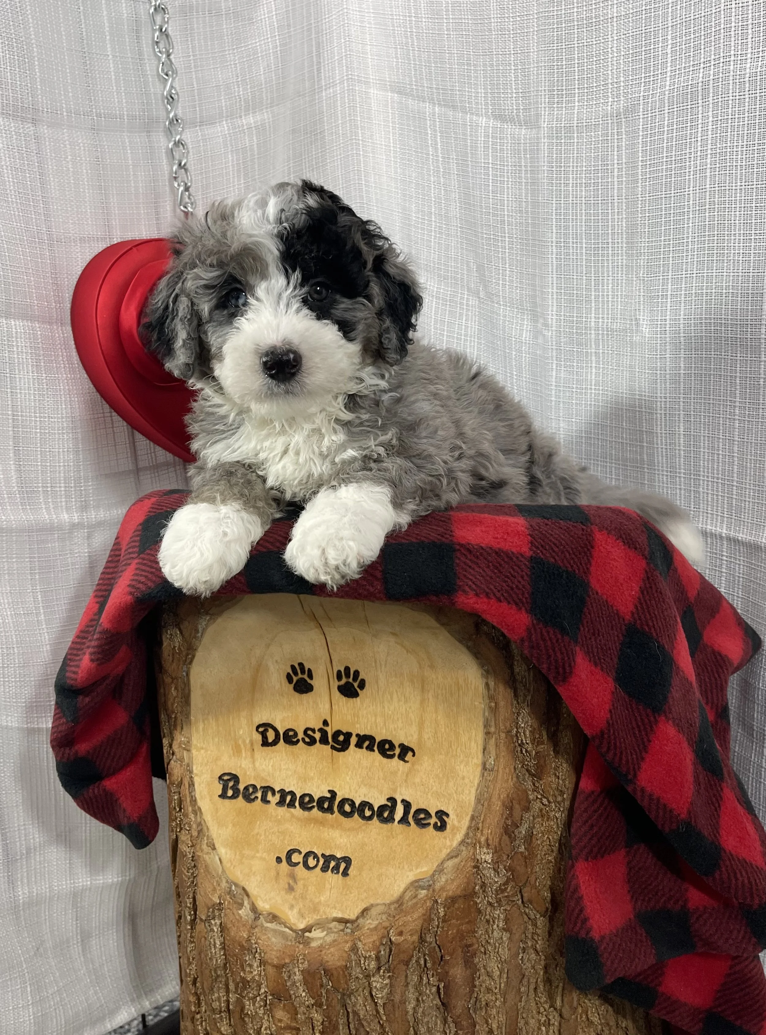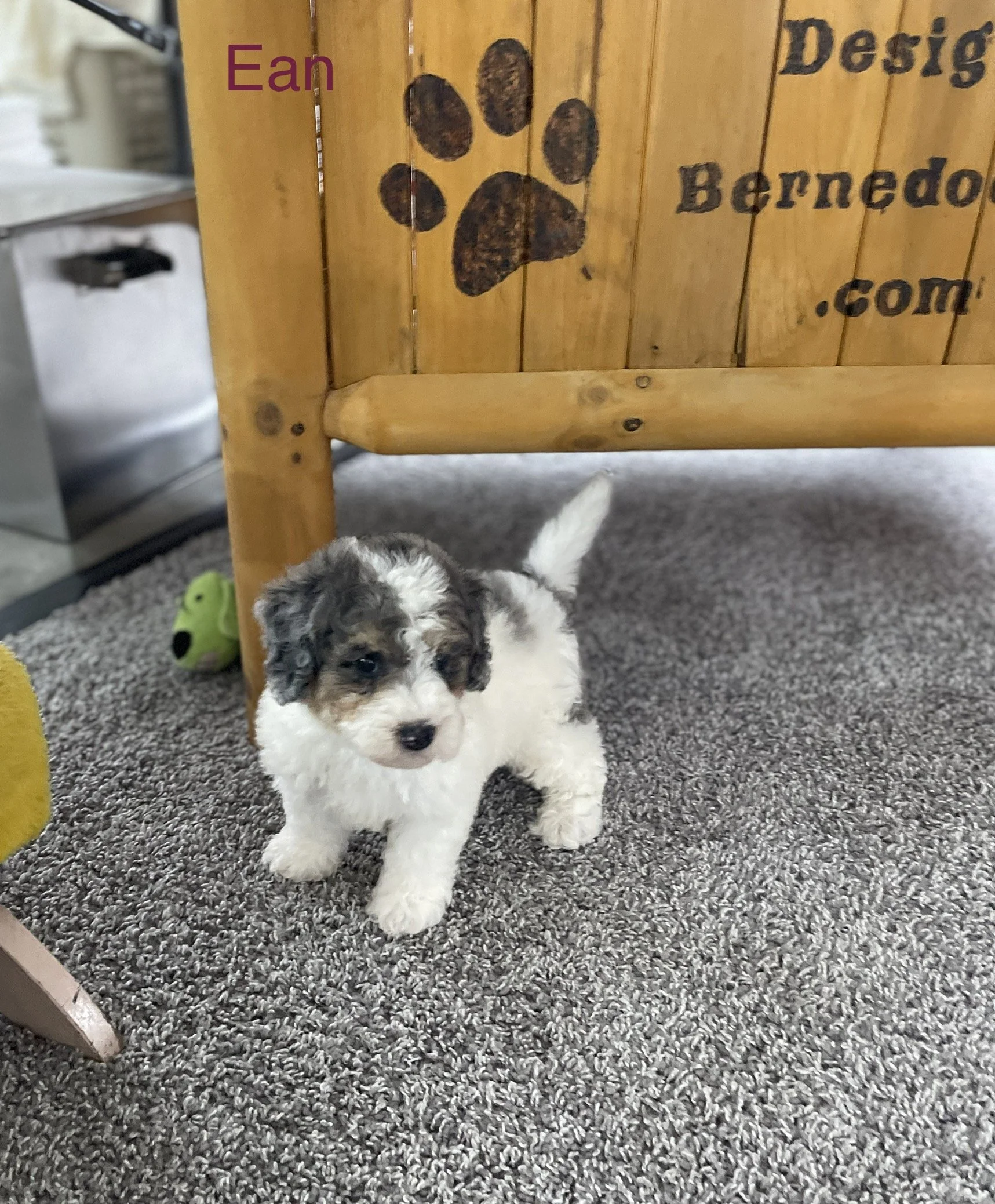Ean 5823 has found his forever home with Maggie Molaison & family from Chicago IL F1b Tri Color Tiny Bernedoodle born Monday Jan 4th Parents are Daisy & Prince.