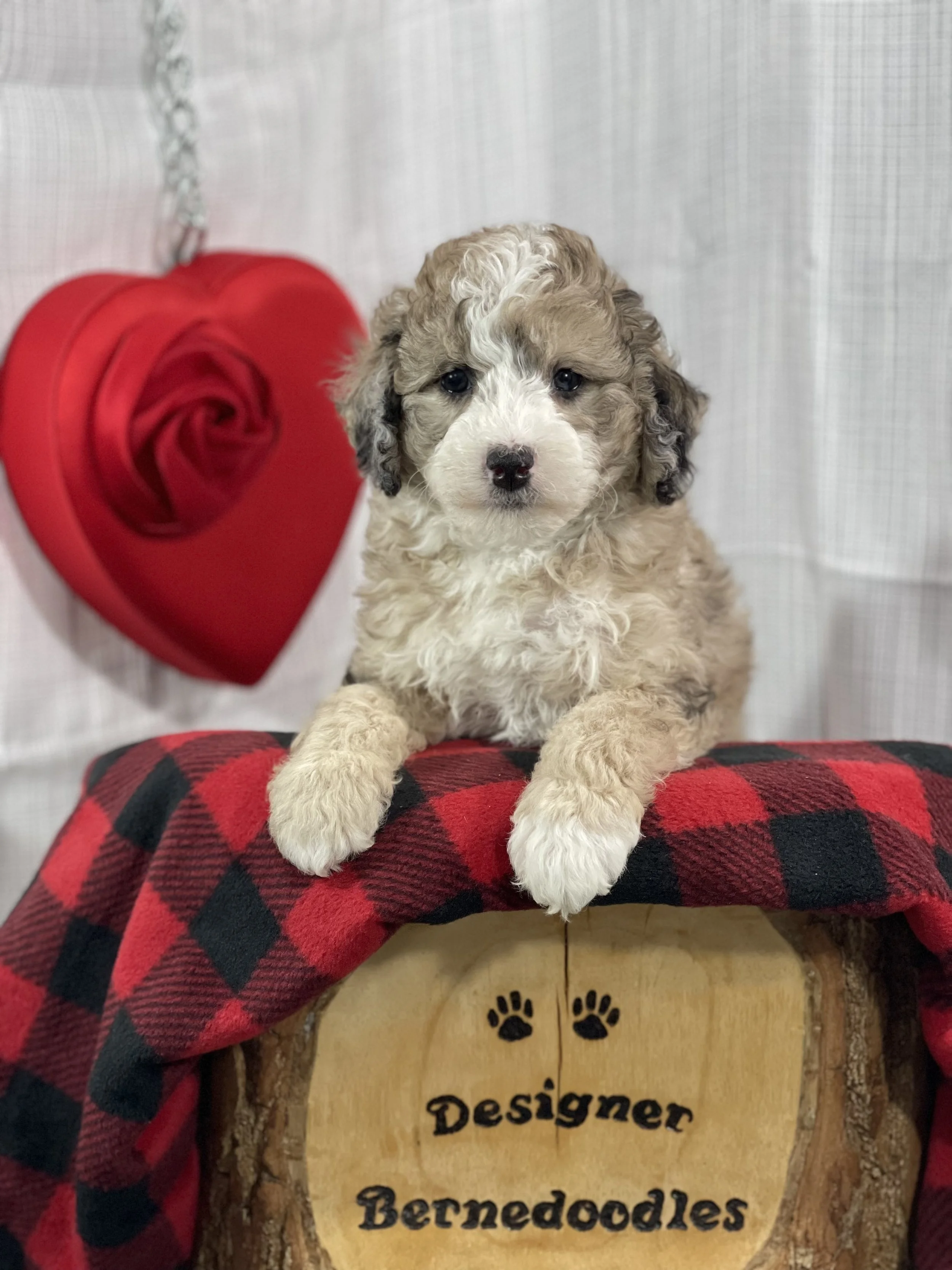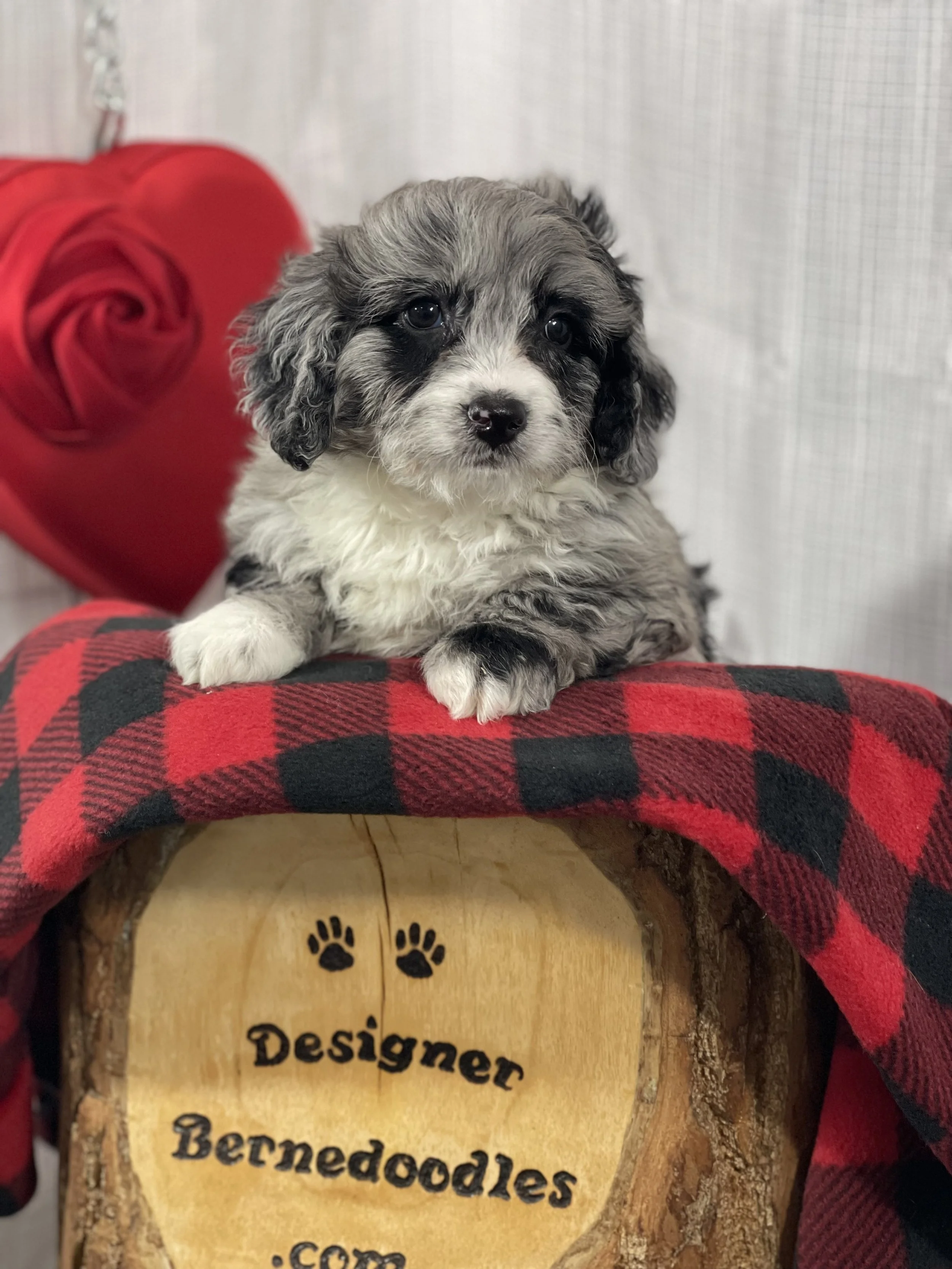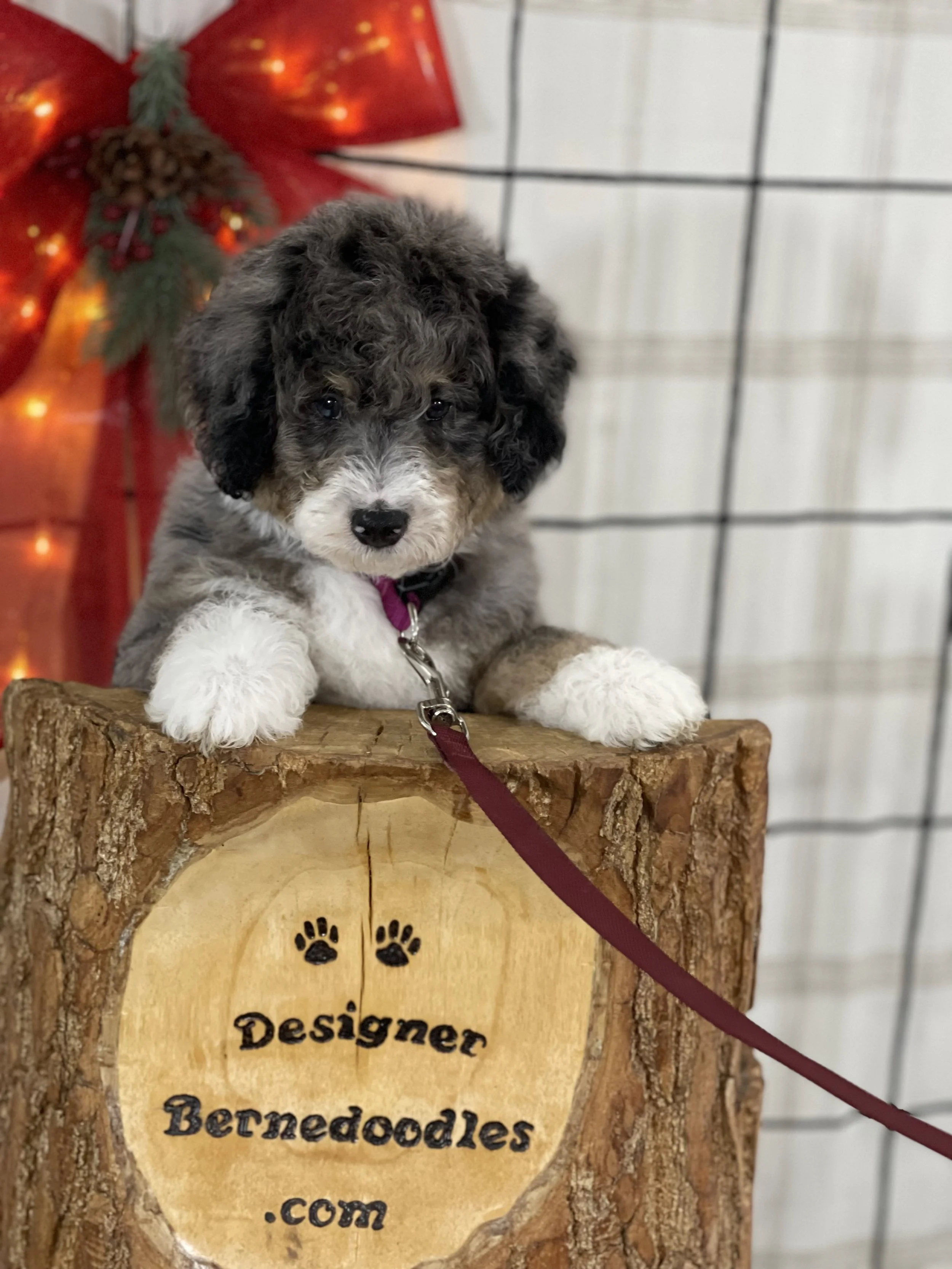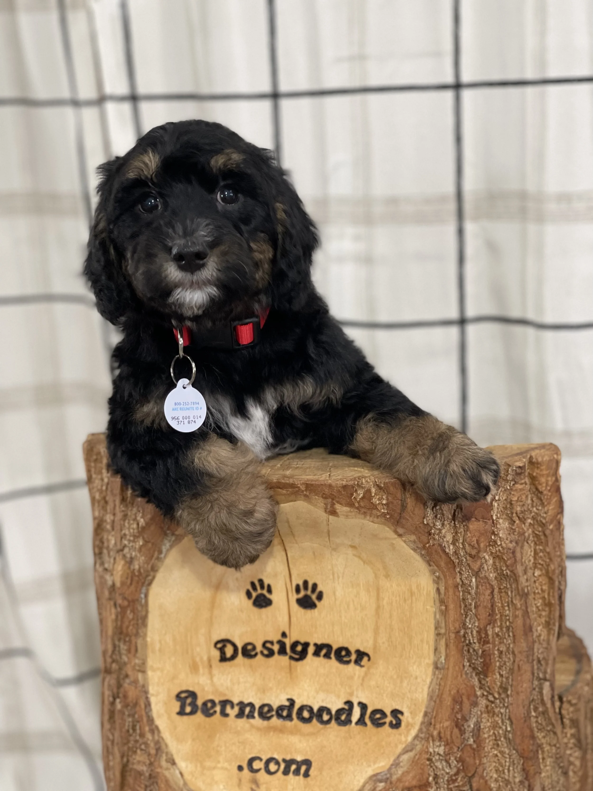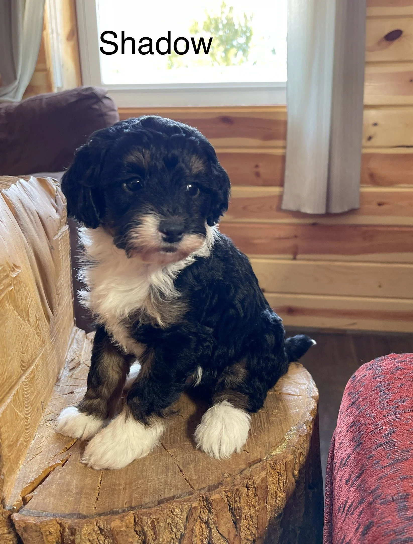 Ean 5823 has found his forever home with Maggie Molaison & family from Chicago IL F1b Tri Color Tiny Bernedoodle born Monday Jan 4th Parents are Daisy & Prince.