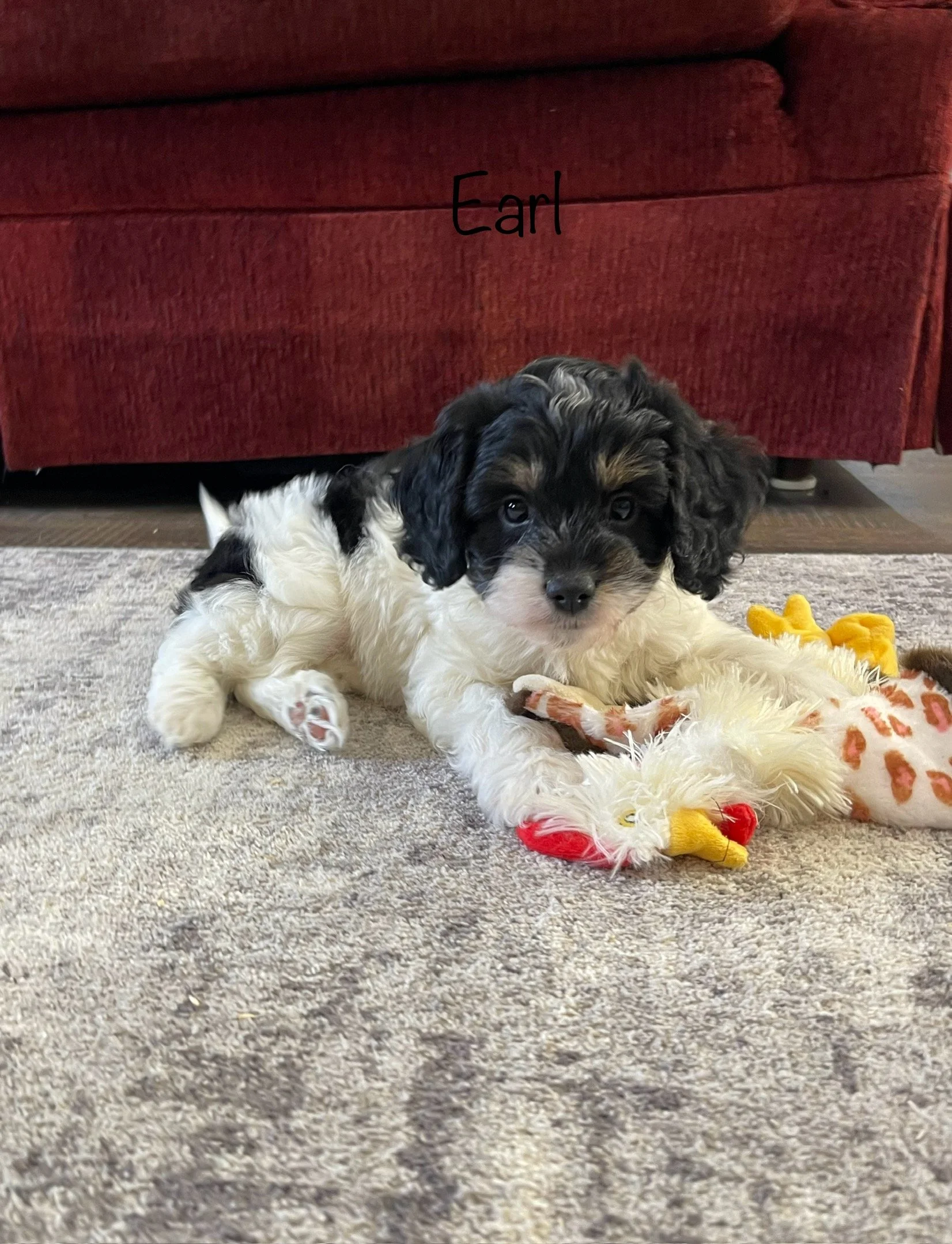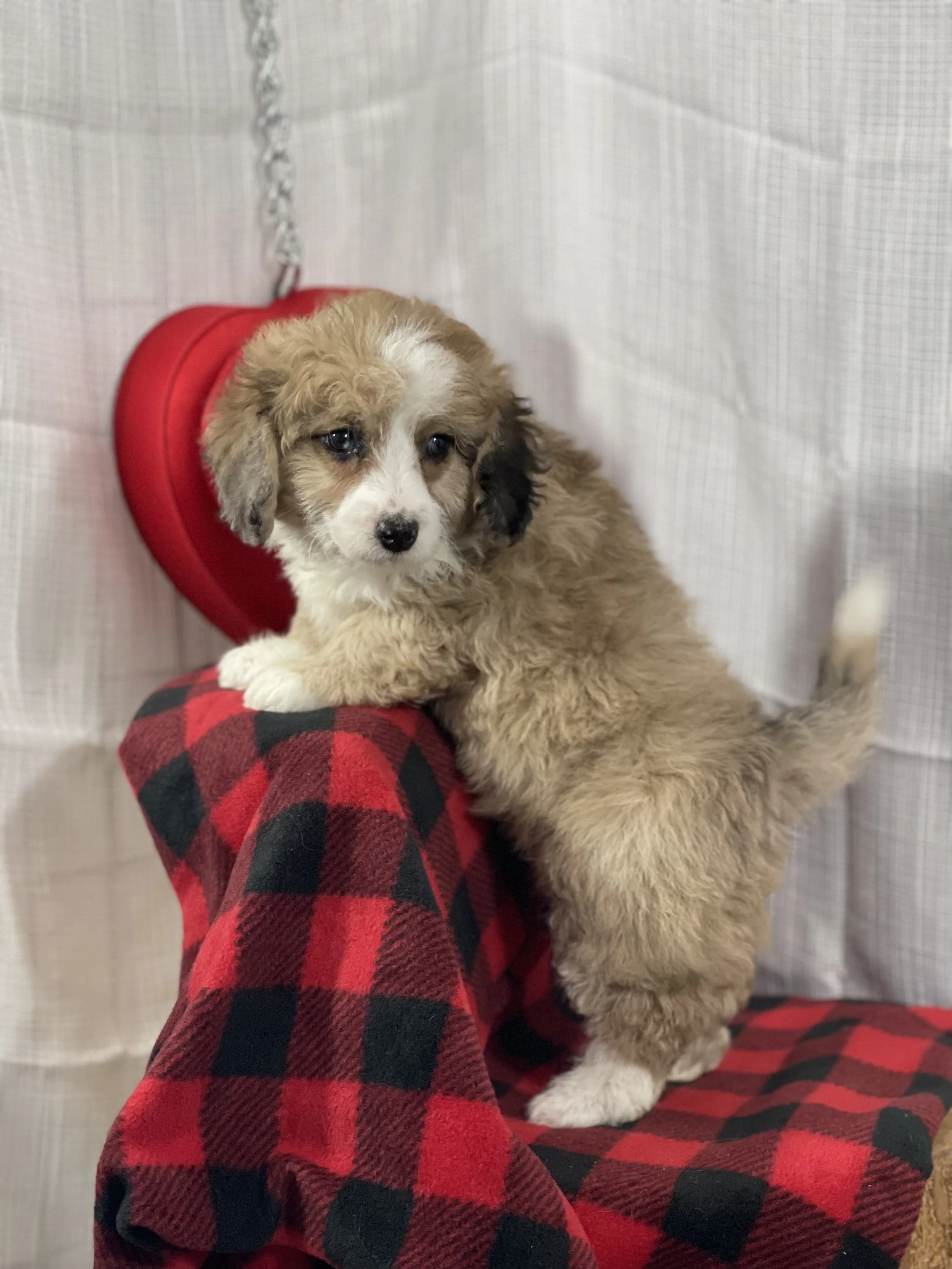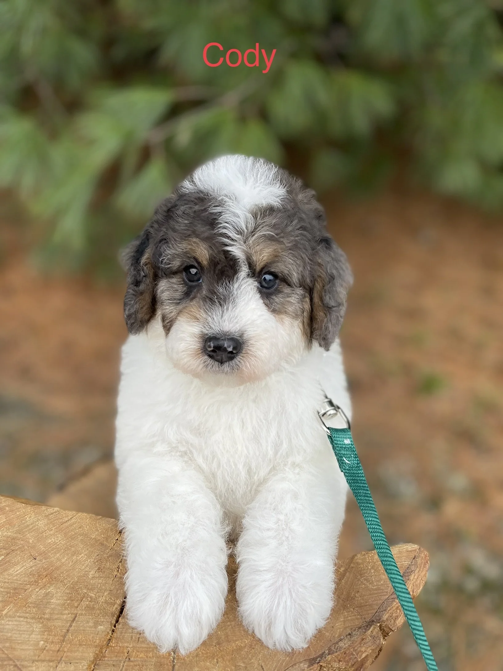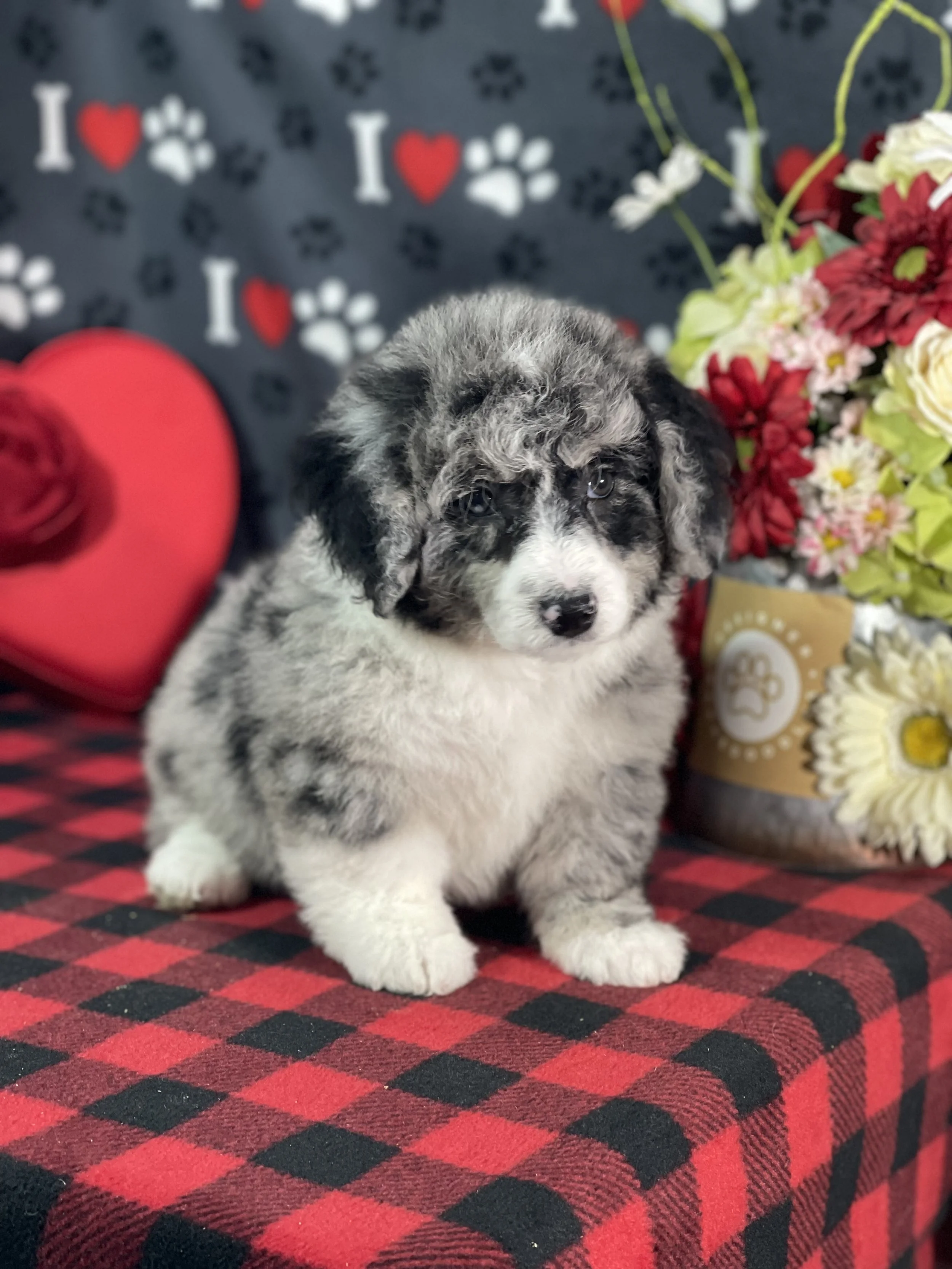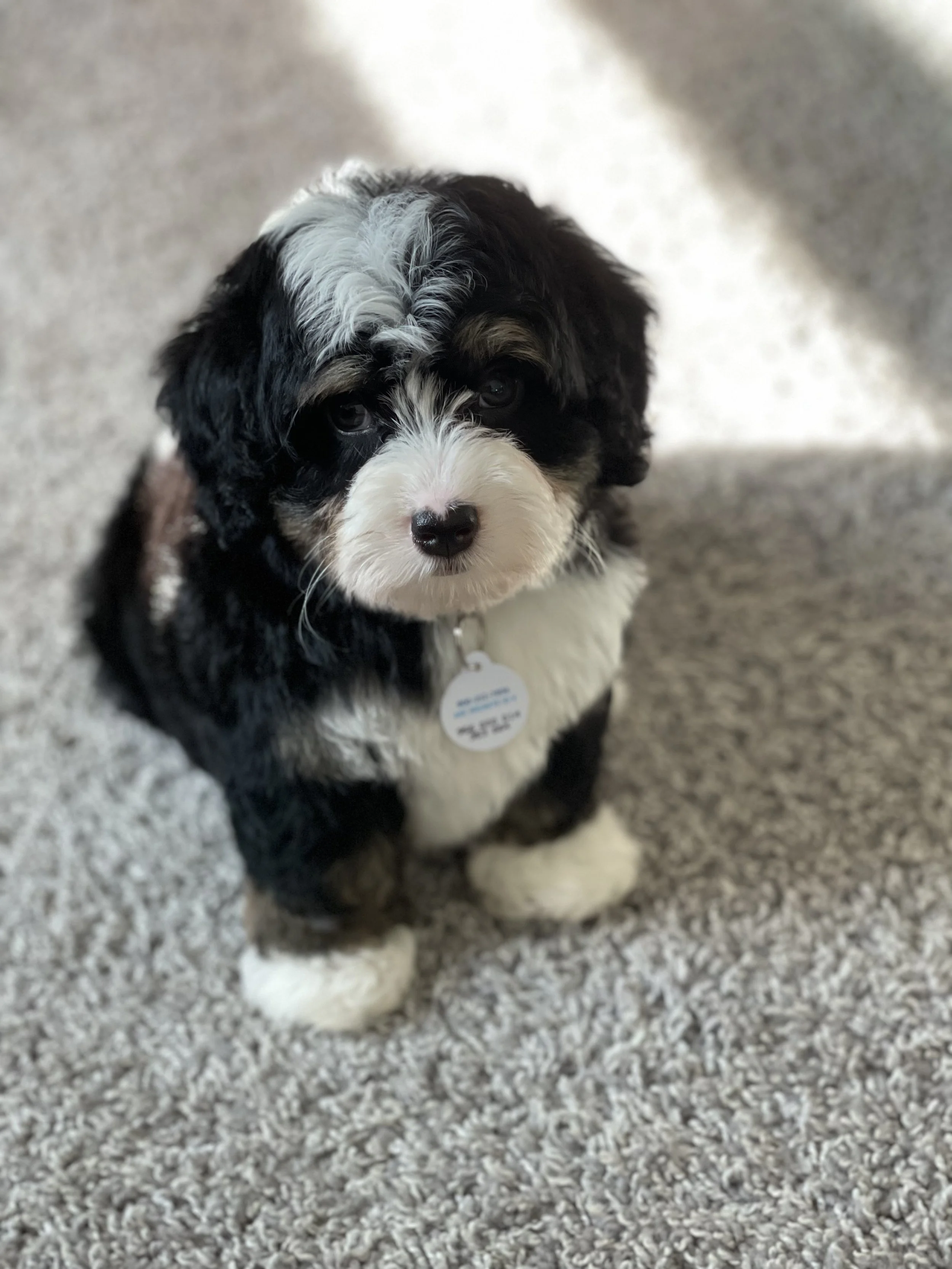 Ean 5823 has found his forever home with Maggie Molaison & family from Chicago IL F1b Tri Color Tiny Bernedoodle born Monday Jan 4th Parents are Daisy & Prince.