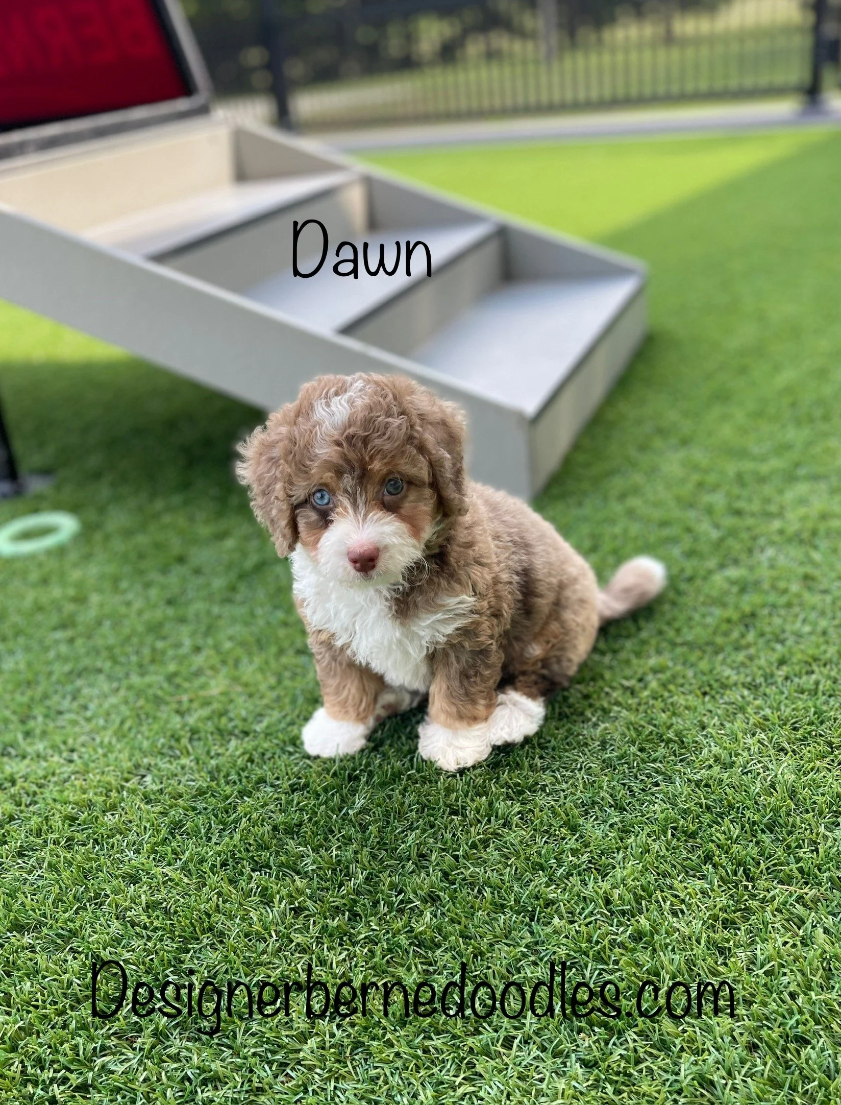Dawn 3011 has found her forever home with Michael & Melinda Ramsey from Peoria IL. She is a gorgeous Brown Merle F1b Tiny / Toy Bernedoodle born Saturday June 21st 2025, She will be 8 weeks old and ready to go home as early as Saturday August 16th. Her parents are Daisy & Prince. Daisy weighs 40lbs and Prince weighs 10lbs. Estimated weight is between 15 & 25 Lbs full grown.