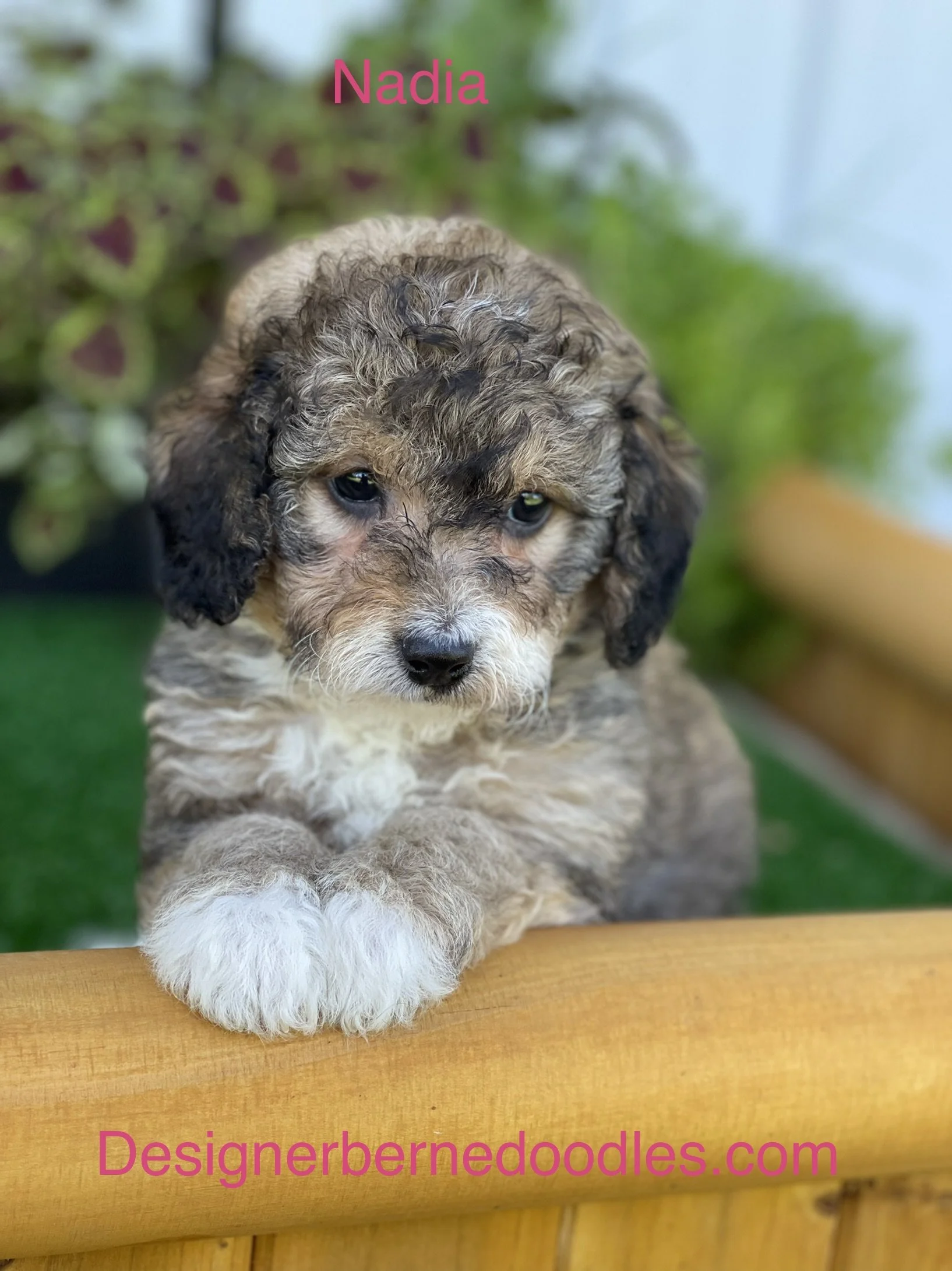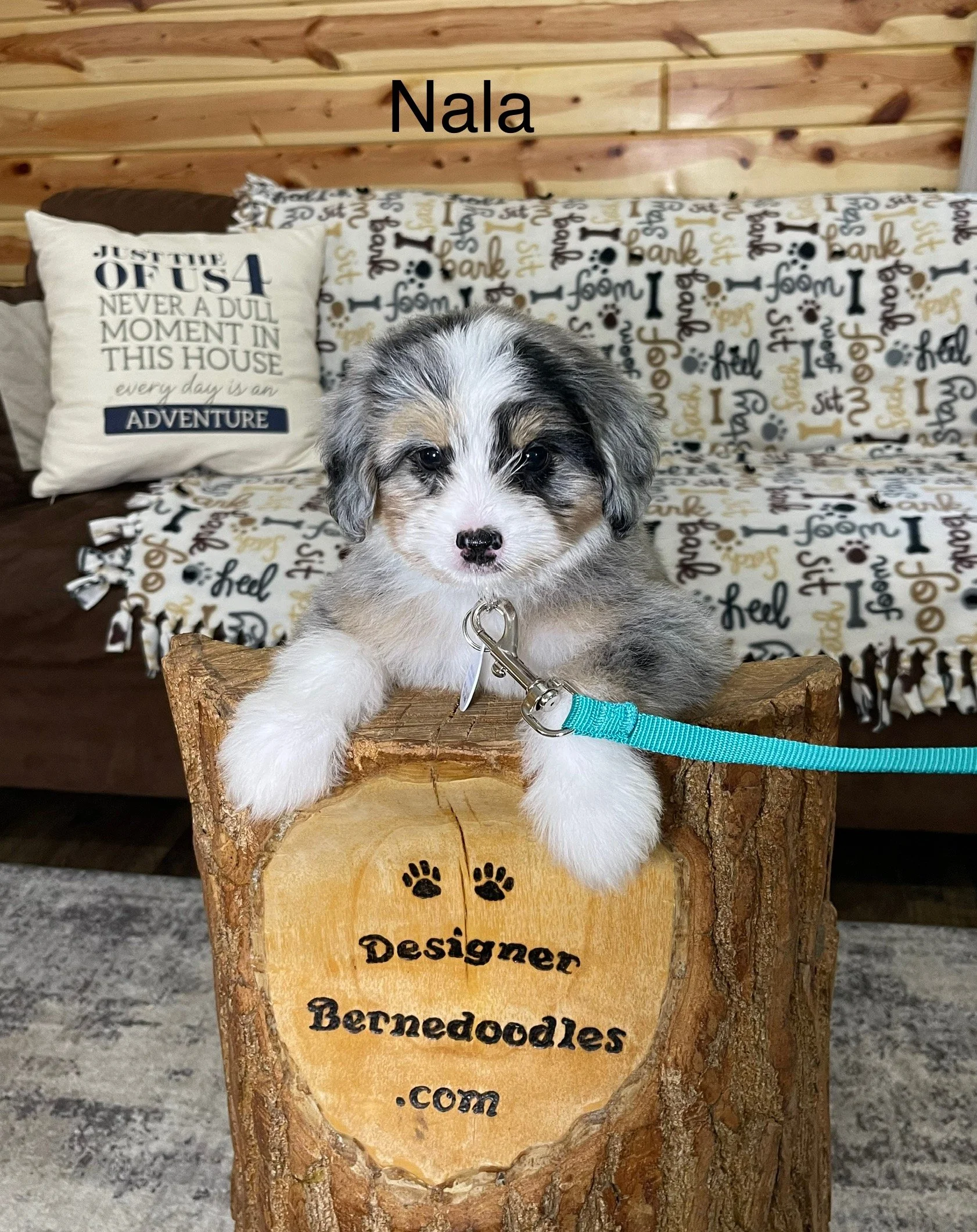 Nala 2466 was Nora has found her forever home with Peter & Sarah Theodossopoulos from Arlington Heights IL, She is a gorgeous Blue Merle F1b Tiny / Toy Bernedoodle born Tuesday June 24th 2025, She will be 8 weeks old and ready to go home as early as Tuesday August 19th. Her parents are Fiona & Banjo. Fiona weighs 23lbs and Banjo weighs 17lbs. Estimated weight is between 15 & 25Lbs full grown.