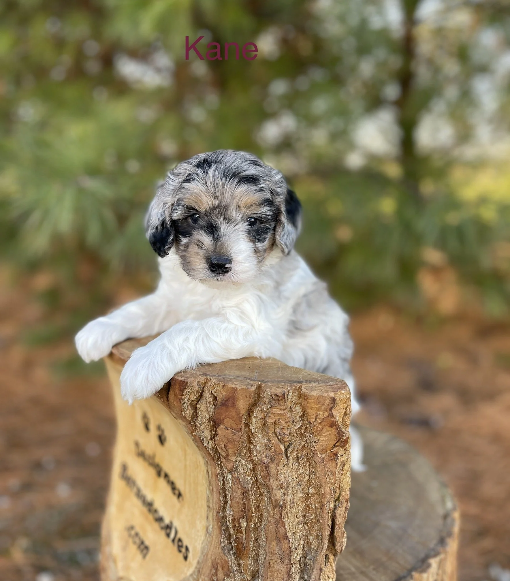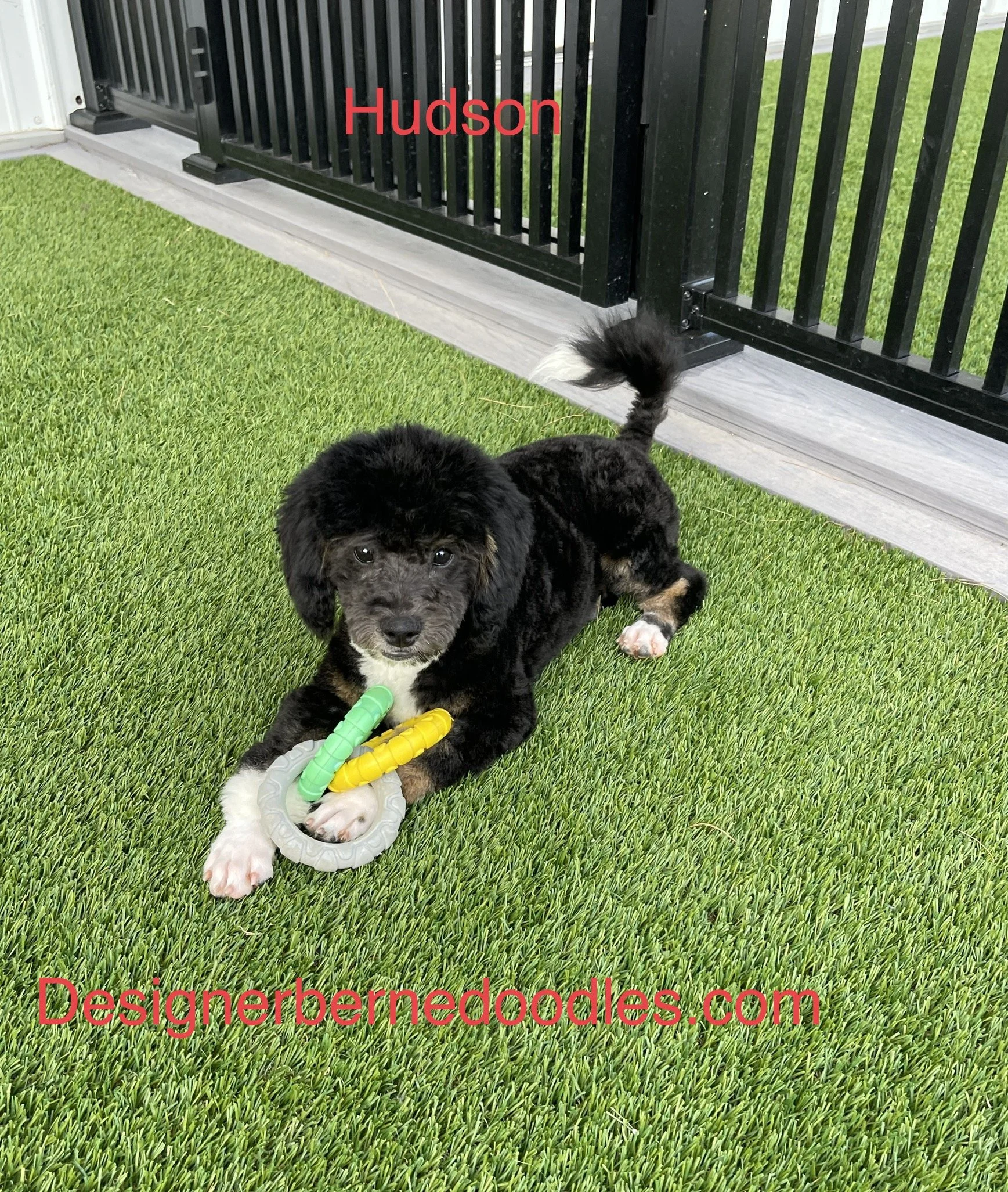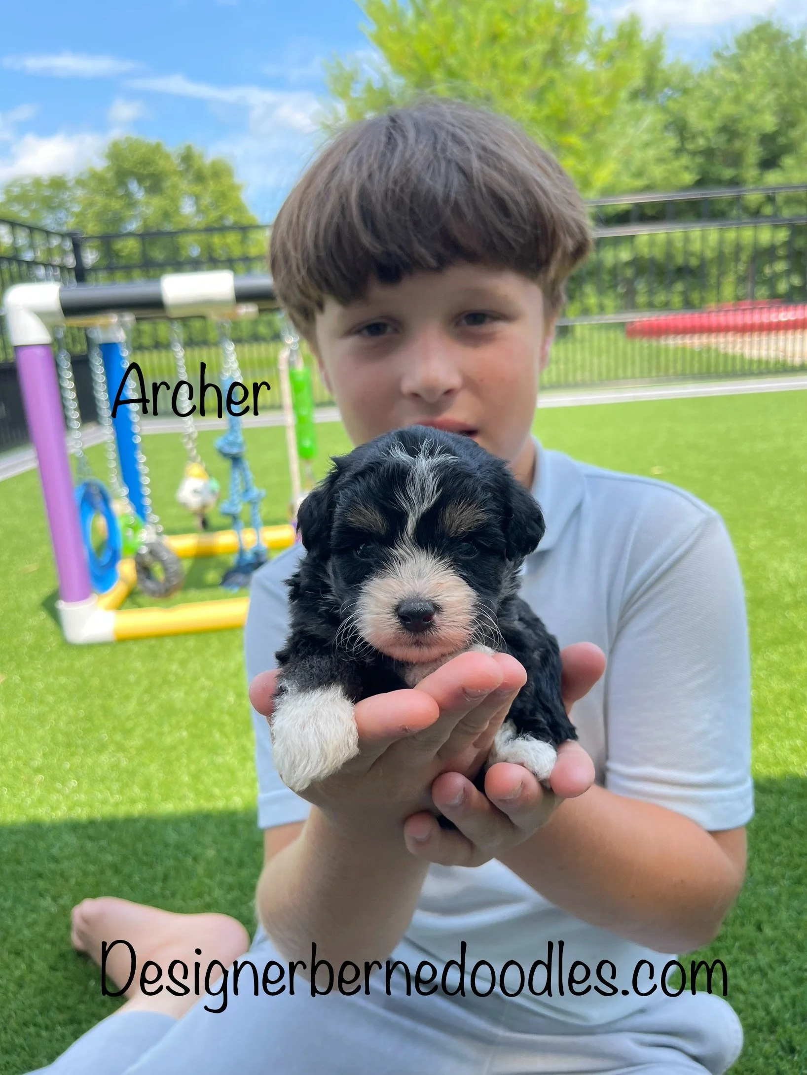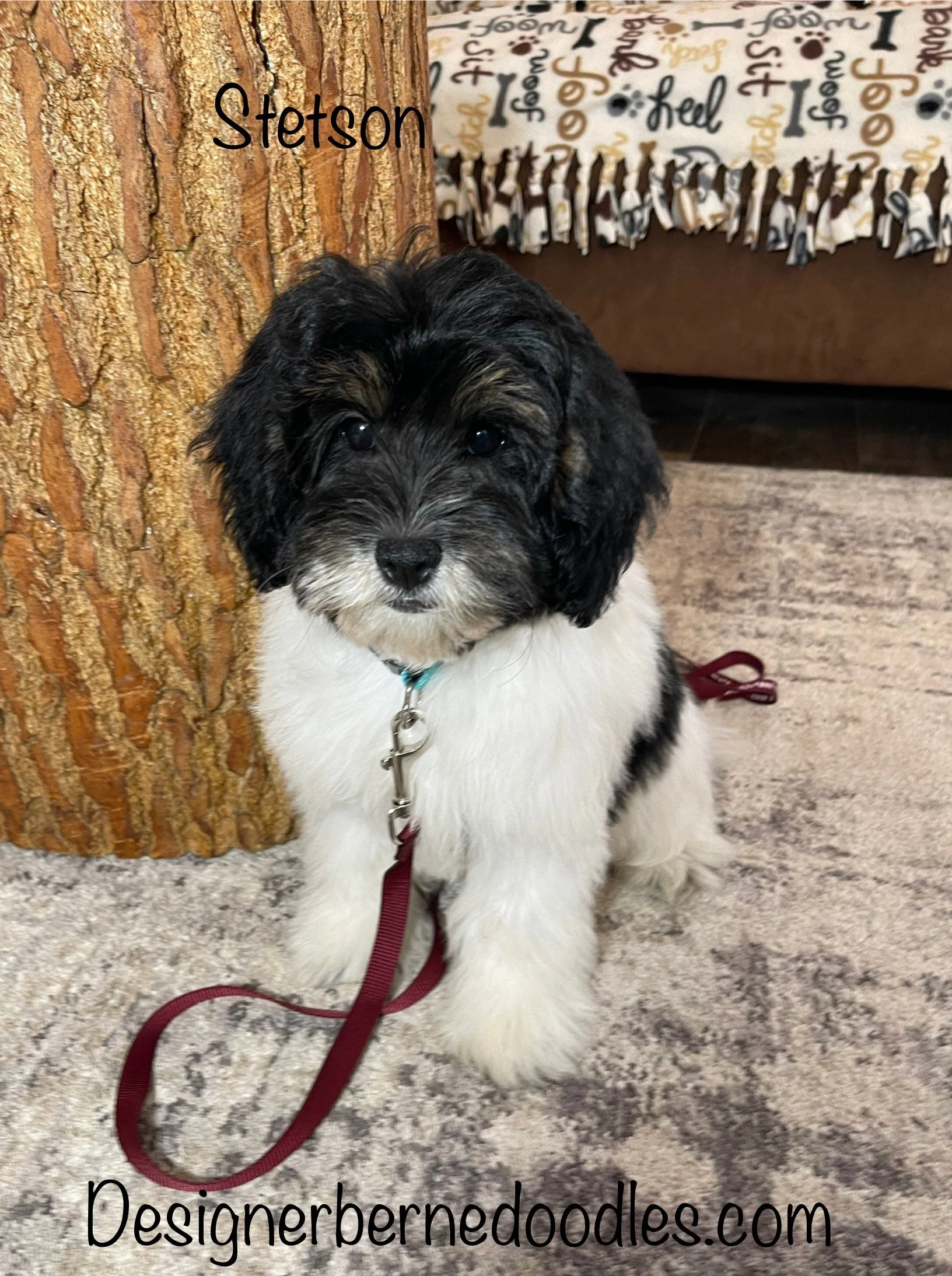 Stetson 1033 has found his forever home with Marvin & Beverly Rathjen from Naperville IL, He is a handsome Black & White Tri Color F1b Tiny / Toy Bernedoodle born Tuesday June 24th 2025, He will be 8 weeks old and ready to go home as early as Tuesday August 19th. His parents are Fiona & Banjo. Fiona weighs 23lbs and Banjo weighs 17lbs. Estimated weight is between 15 & 25 Lbs full grown.