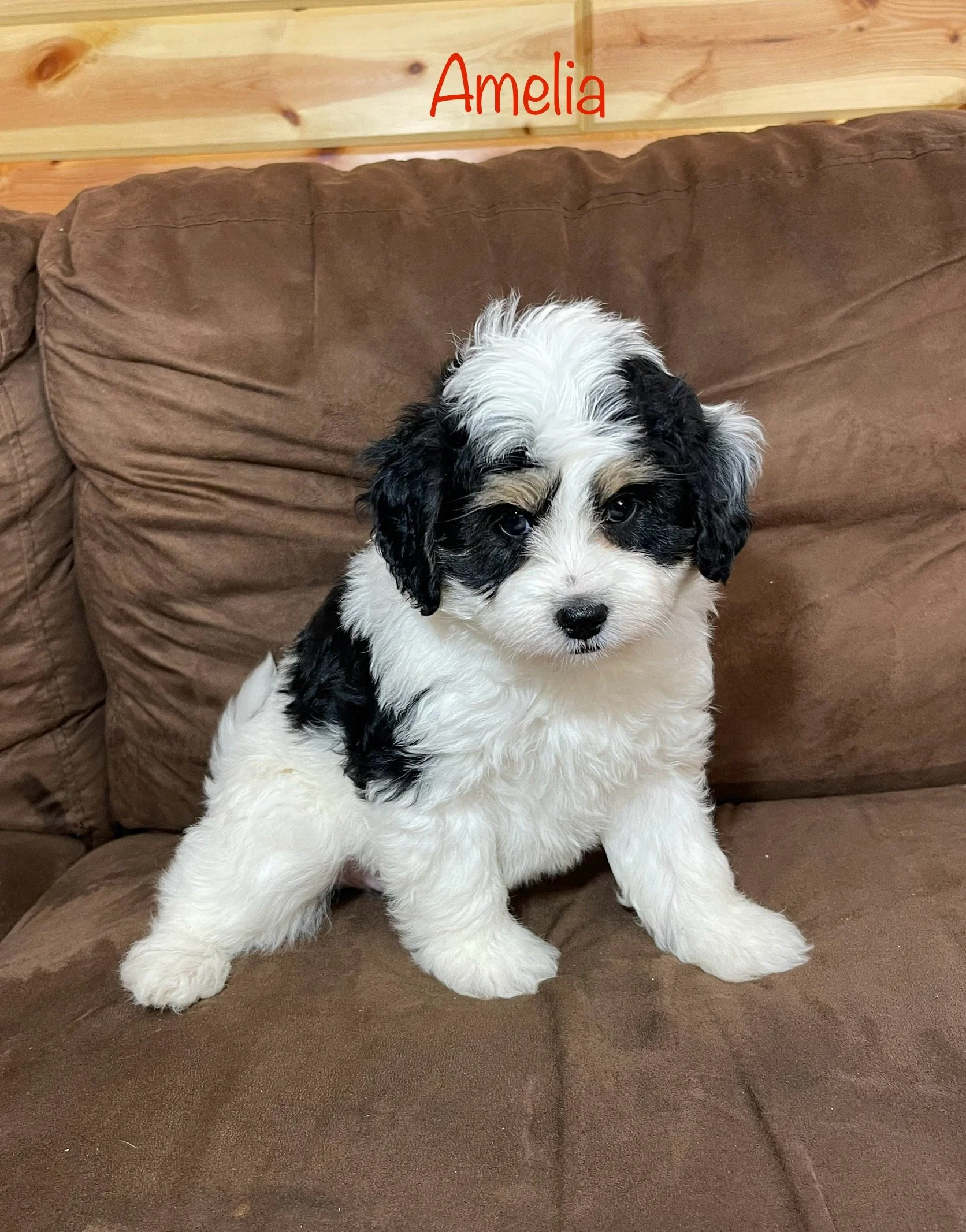 Amelia 5446 has found her forever home with Nicole Grelecki & family from Park Ridge IL is a gorgeous F1b Tiny Bernedoodle Tri Color girl born Mon Dec 9th 2024. parents are Daisy & Banjo