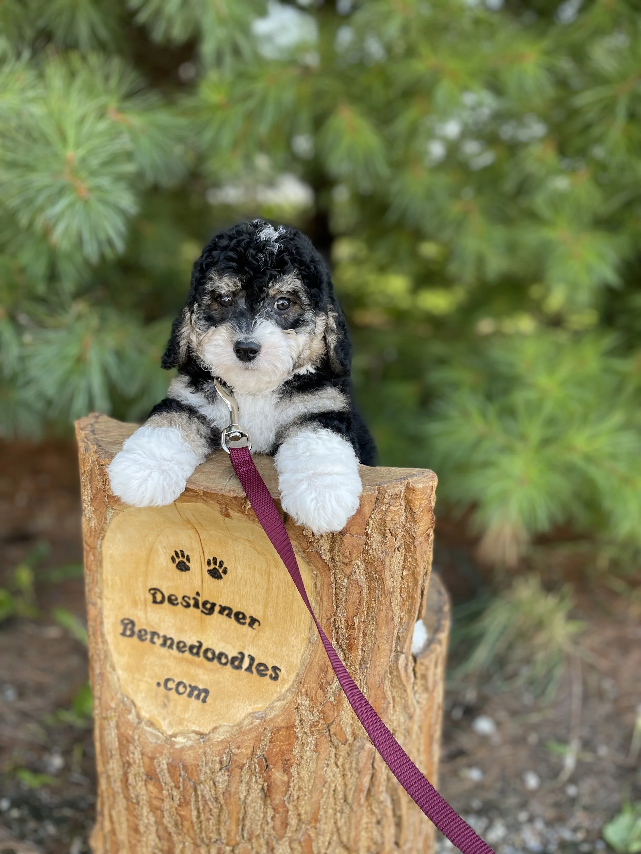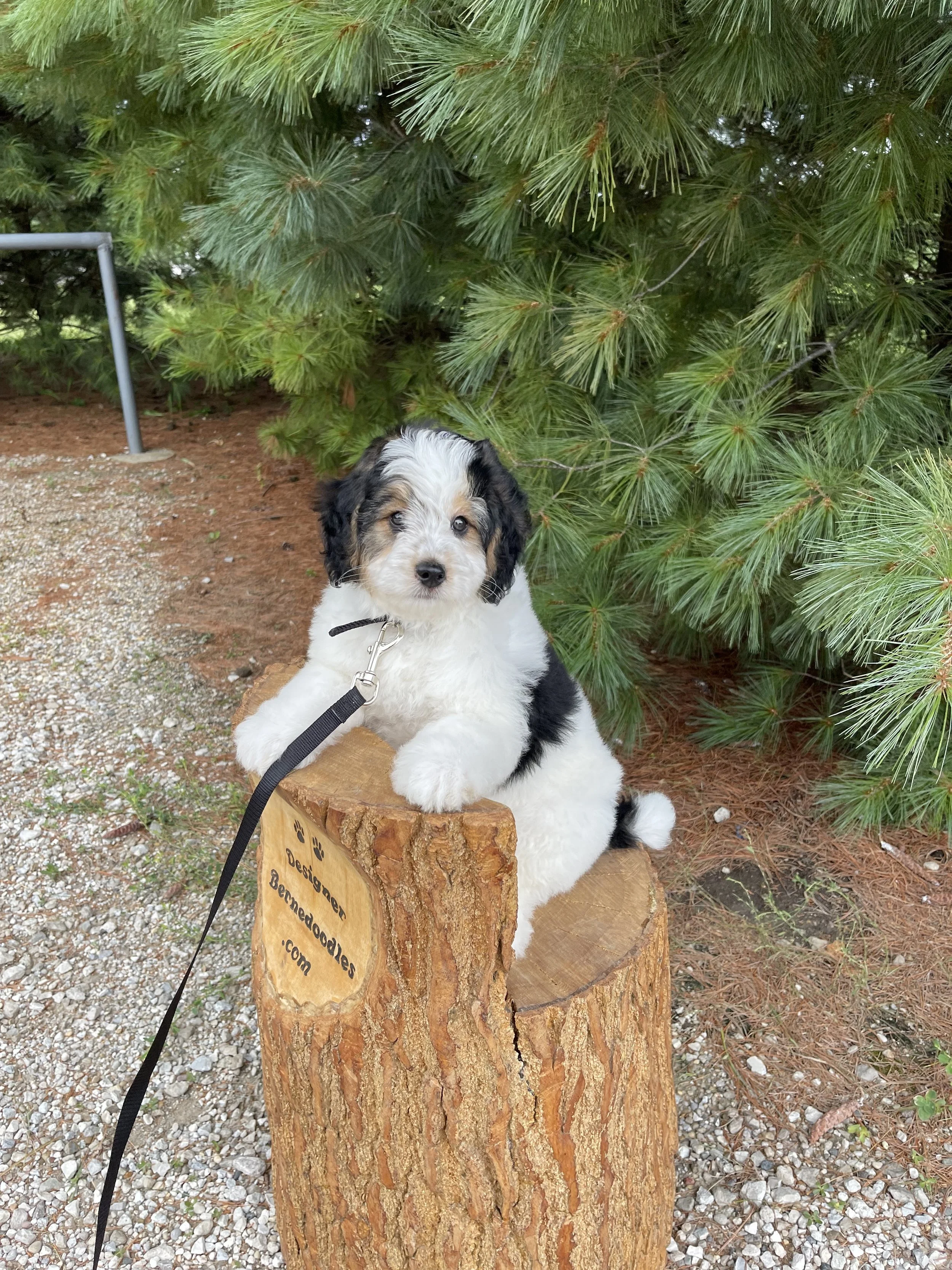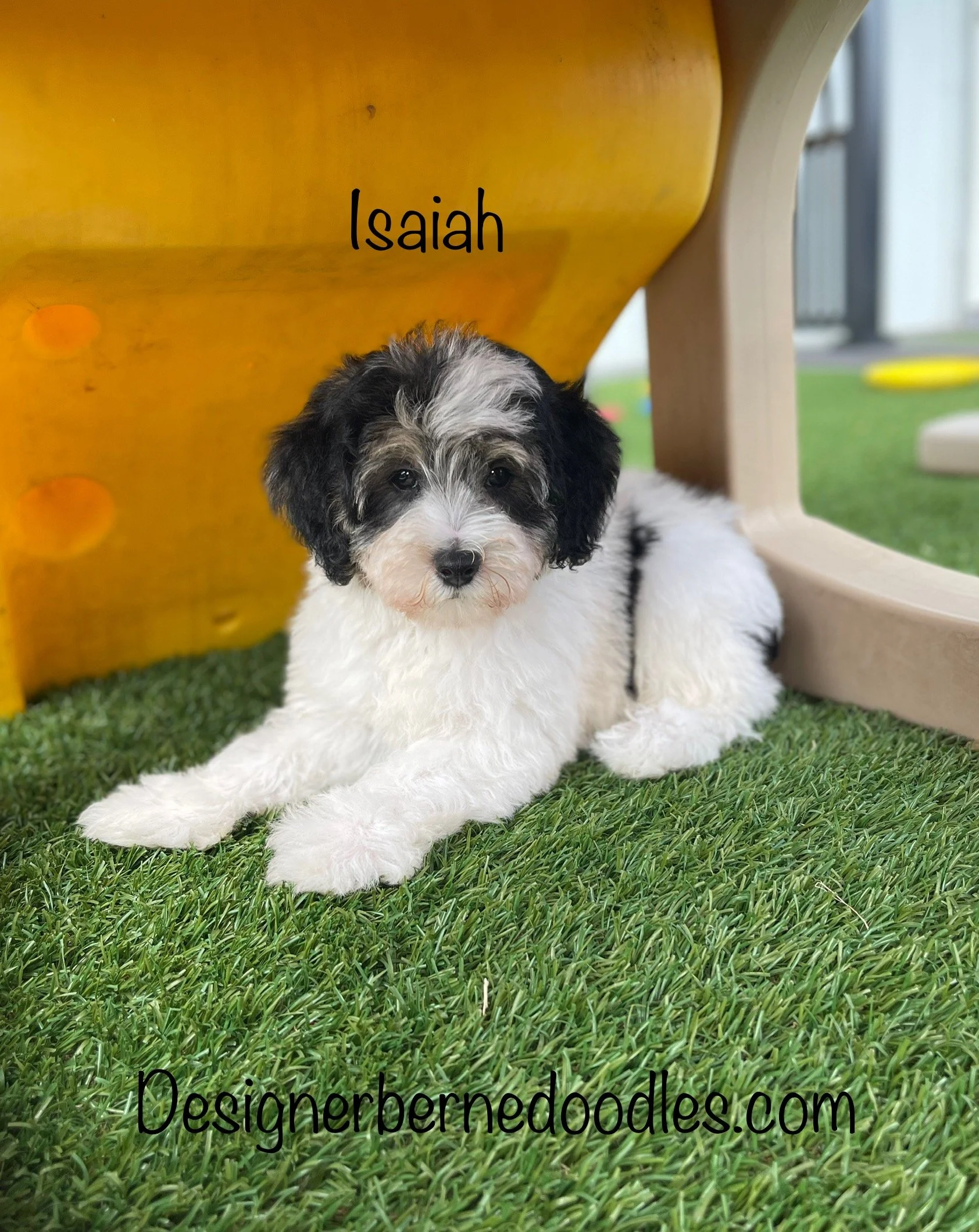 Isaiah 0810 has found her forever home with Daniella Pontillo & family from Willowbrook IL, He is a handsome Tri Color F1b Tiny / Toy Bernedoodle born Saturday June 21st 2025, He is available to go home as early as today!. His parents are Daisy & Prince. Daisy weighs 40lbs and Prince weighs 10lbs. Estimated weight is between 20 & 25 Lbs full grown. To reserve him, call or email Ryan @ 2174601313. Email Designerbernedoodles@gmail.com