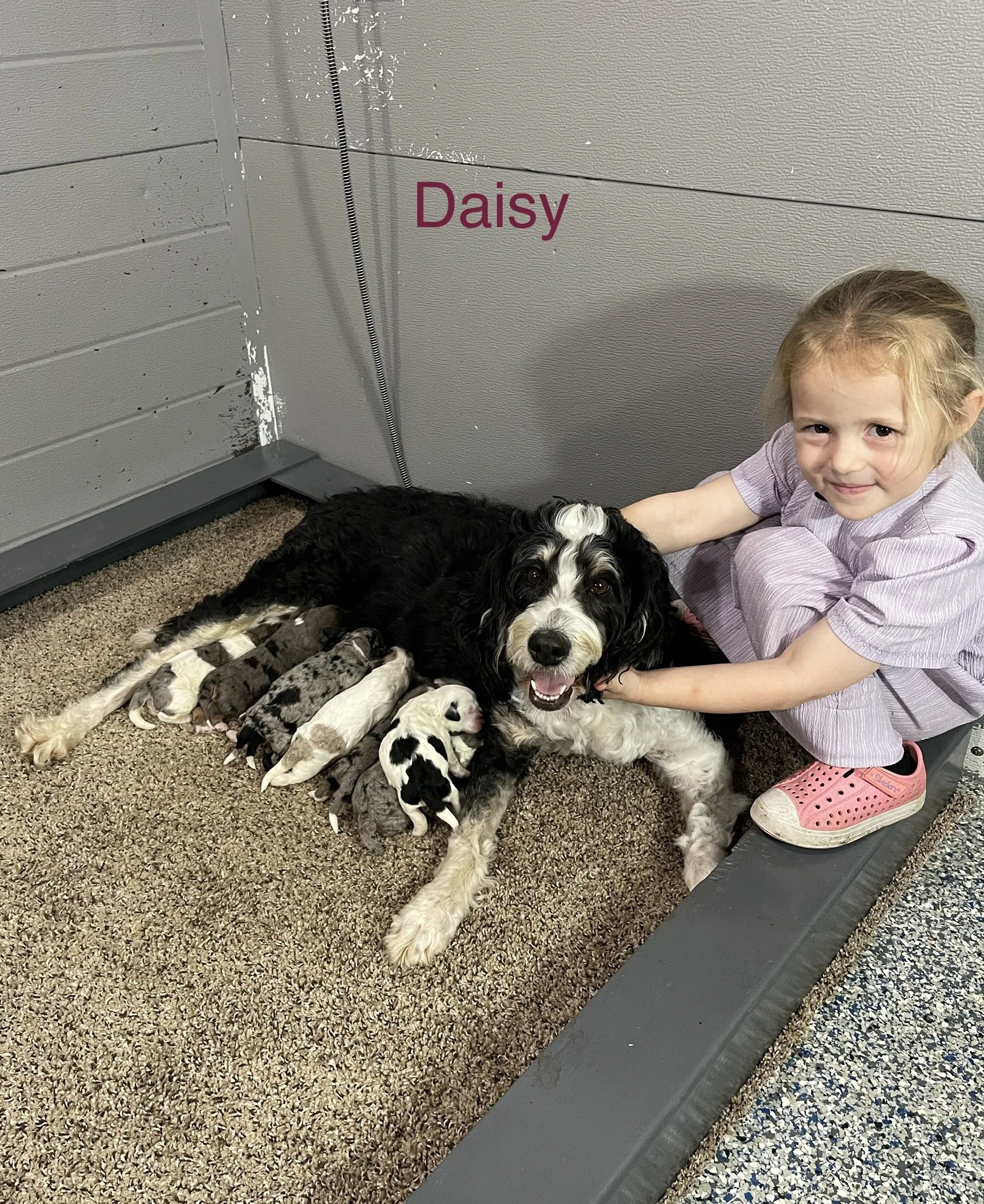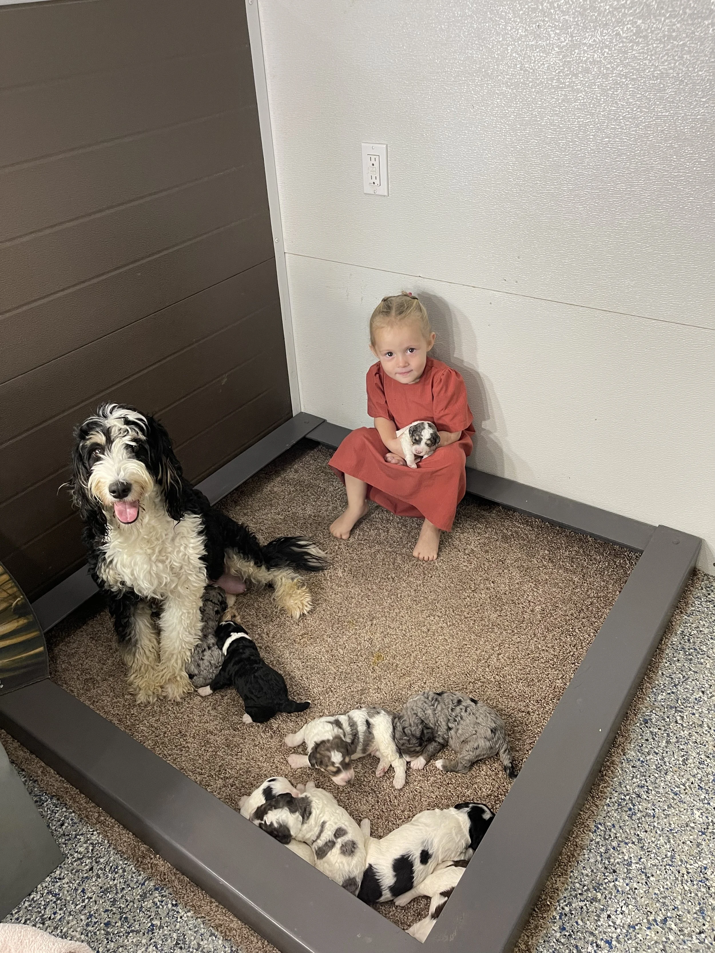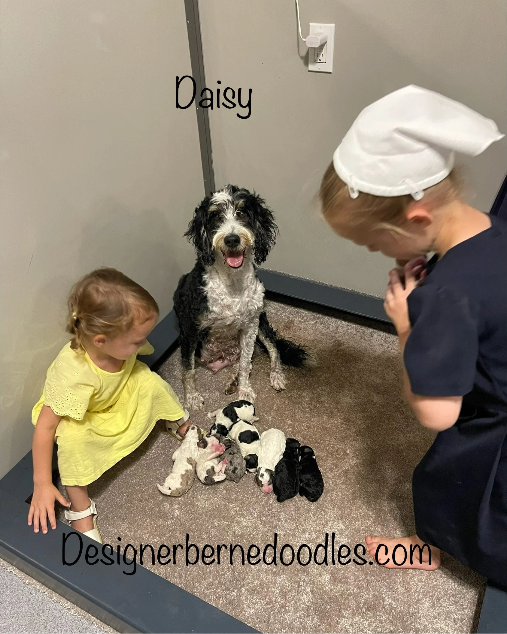Daisy & Prince welcomed a gorgeous litter of F1b Tiny/ Toy Bernedoodles on Saturday June 21st! They will be 8 weeks old and ready to go home as early as Saturday August 16th 2025. Text or call Ryan at 2174601313