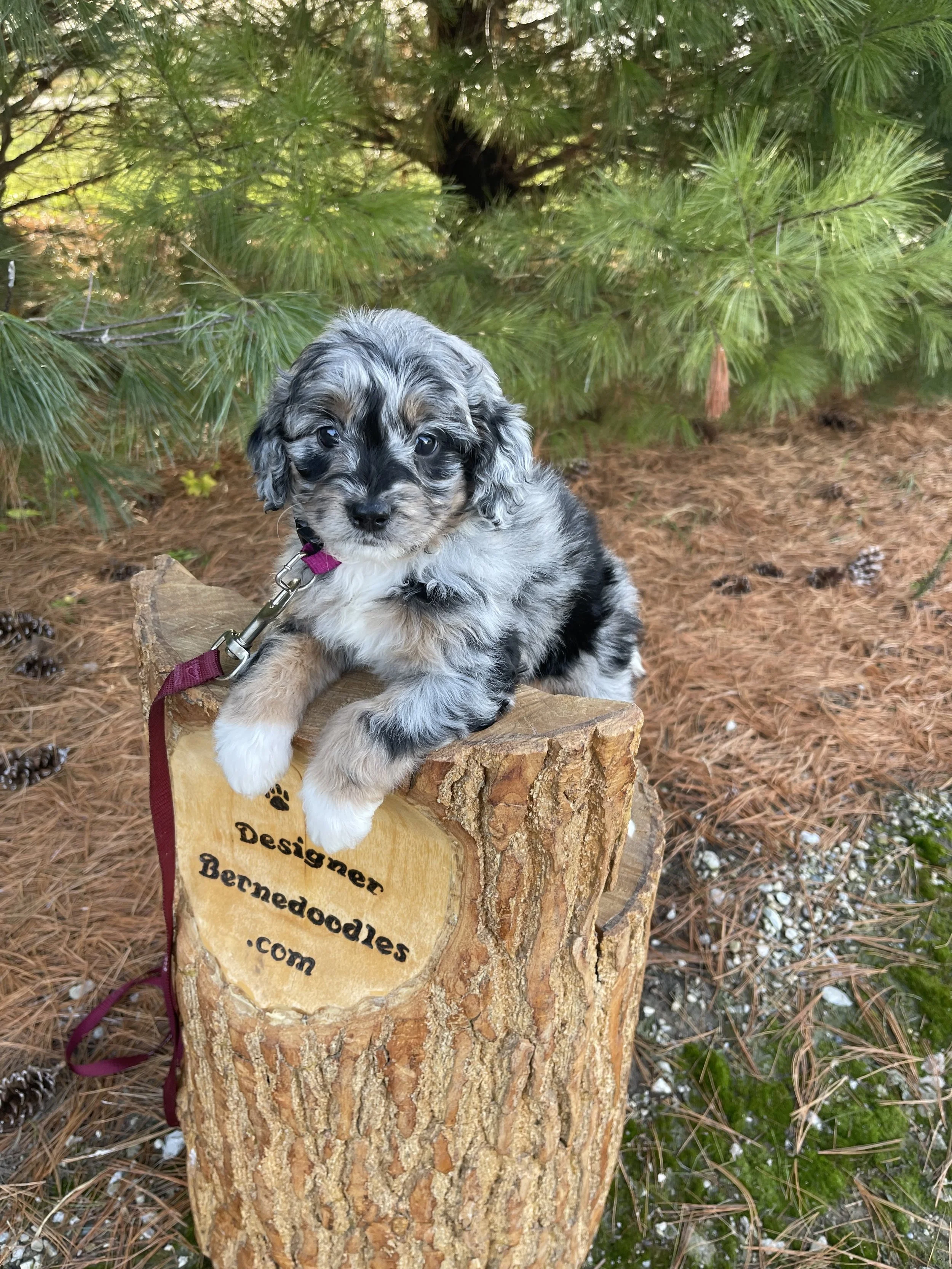 Millie formerly Helen 0188 has found her forever home with Shana Gray from New York NY, She is an F1b Blue Merle Tiny Bernedoodle Parents are Fiona & Banjo.