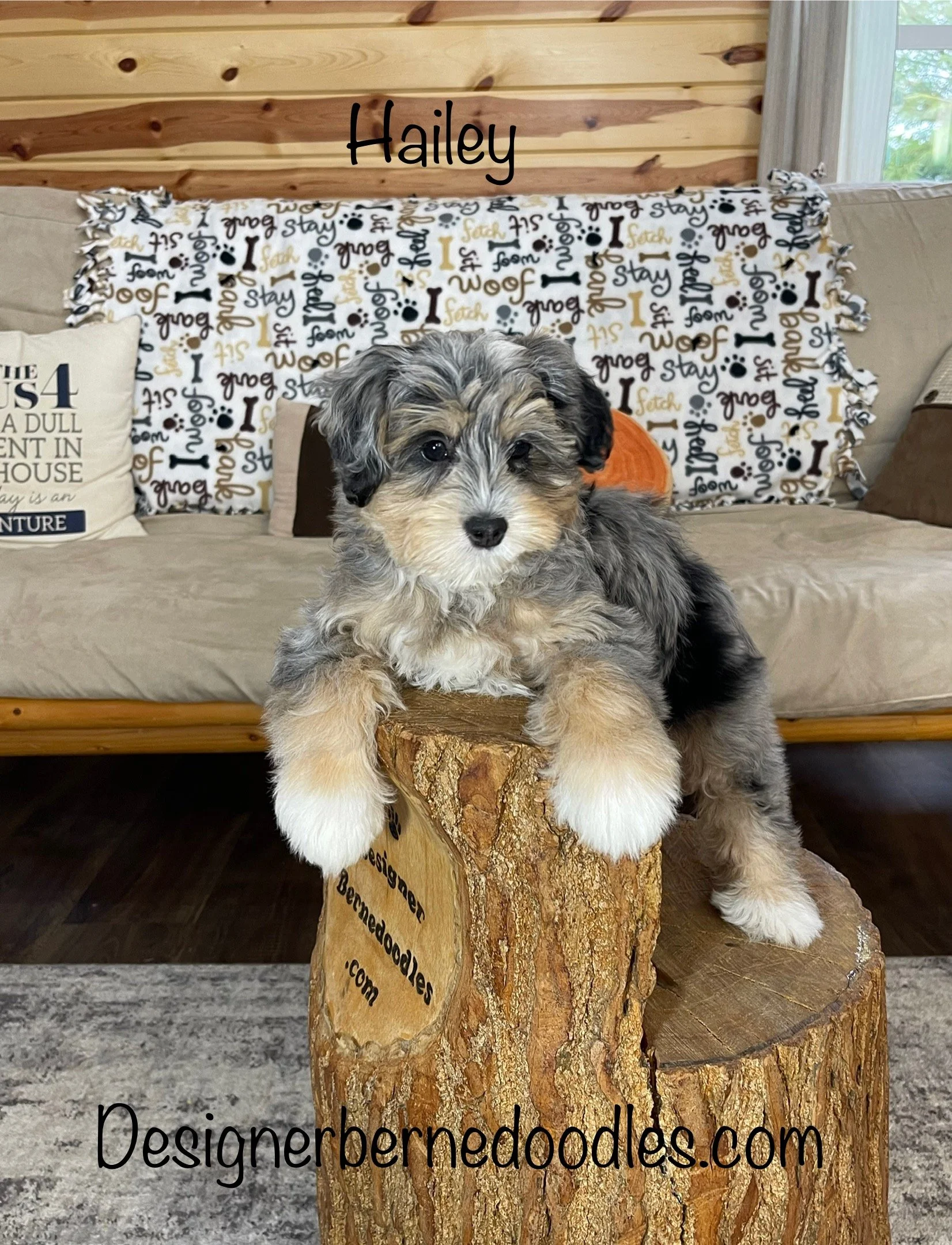 Ivy 6557 has found her forever home with Gary & Jackie Roach from Freeport IL, She is a gorgeous Tri Color F1b tiny Bernedoodle born Wednesday Dec 24th 2025, She will be 8 weeks old and ready to go home as early as Wednesday Feb 18th. Her parents are Fiona & Banjo. Fiona weighs 23lbs and Banjo weighs 17lbs. Estimated weight is between 15 to 30 Lbs full grown.