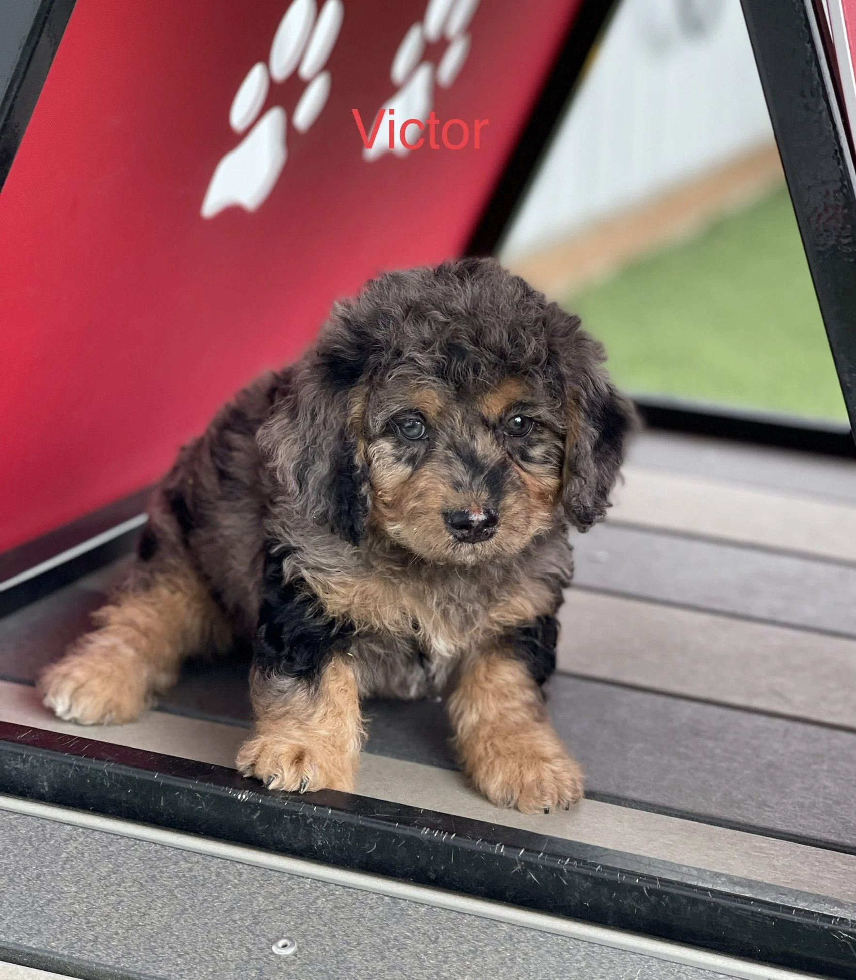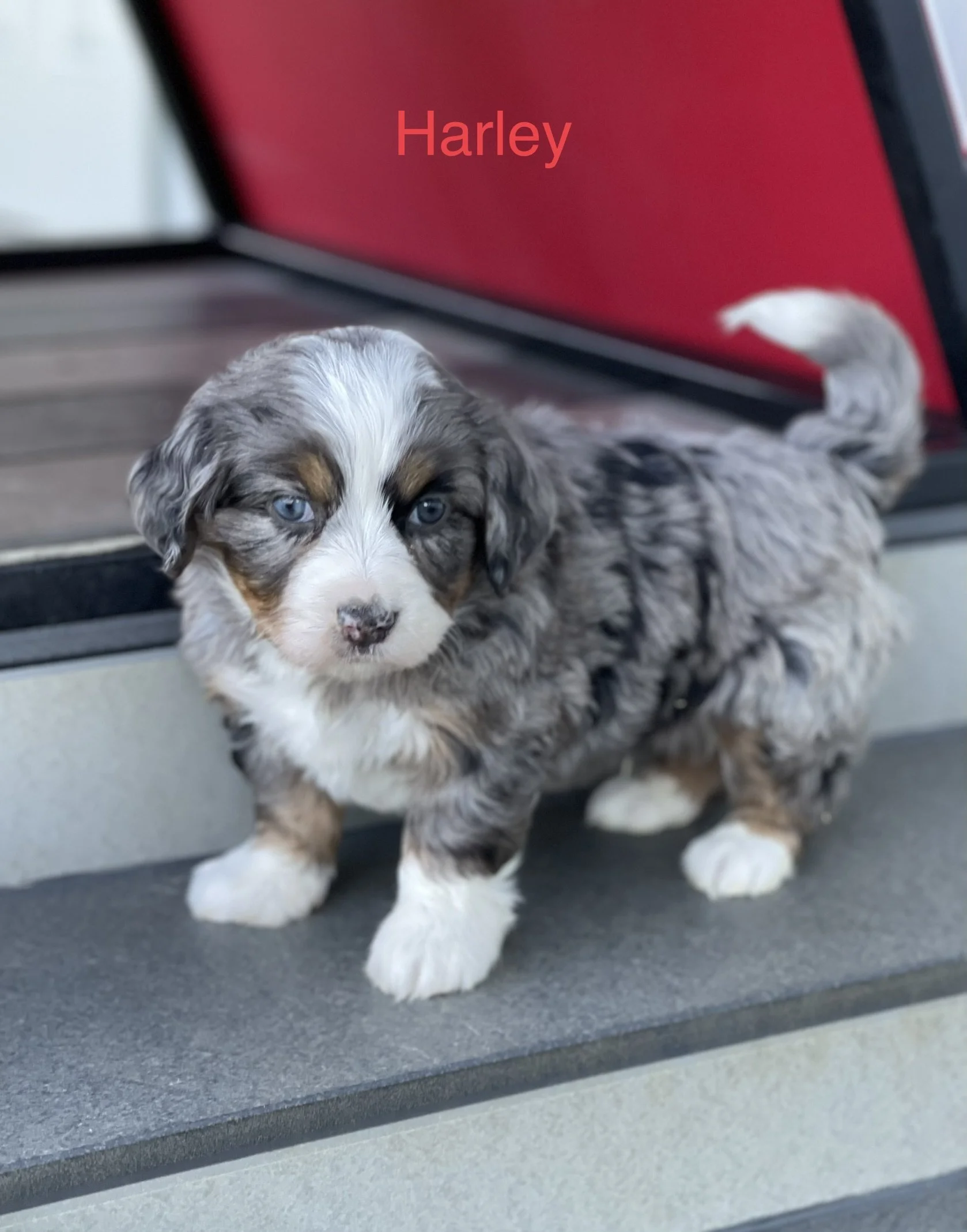Bentley 1449 has found his forever home with Mark Wigham from Brooklyn NY is a handsome F1b Blue Merle Tiny Bernedoodle born Tuesday June 18th!!