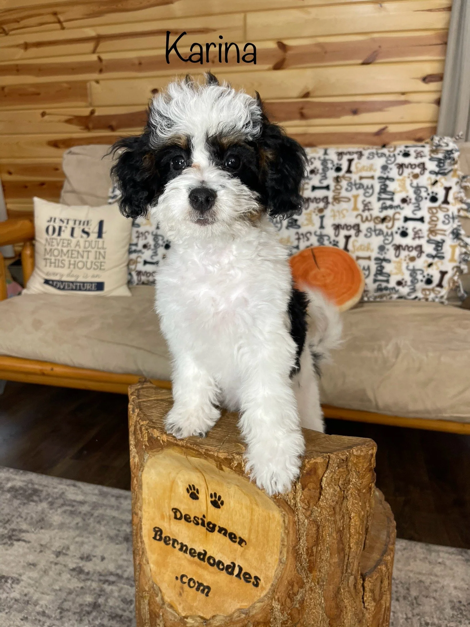 Karina 6495 is a gorgeous Black & White Tri Color F1b Tiny / Toy Bernedoodle born Wednesday Dec 10th 2025, She will be 8 weeks old and ready to go home as early as Wednesday Febuary 4th. Her parents are Queen & Jimmy. Queen is an F1 Mini Bernedoodle who weighs 25Lbs and Jimmy is a mini poodle who weighs 13lbs. Estimated weight is between 15 & 25Lbs full grown. She is priced @ $3500. To place a $500 deposit to reserve her text, or call Ryan @ 2174601313.