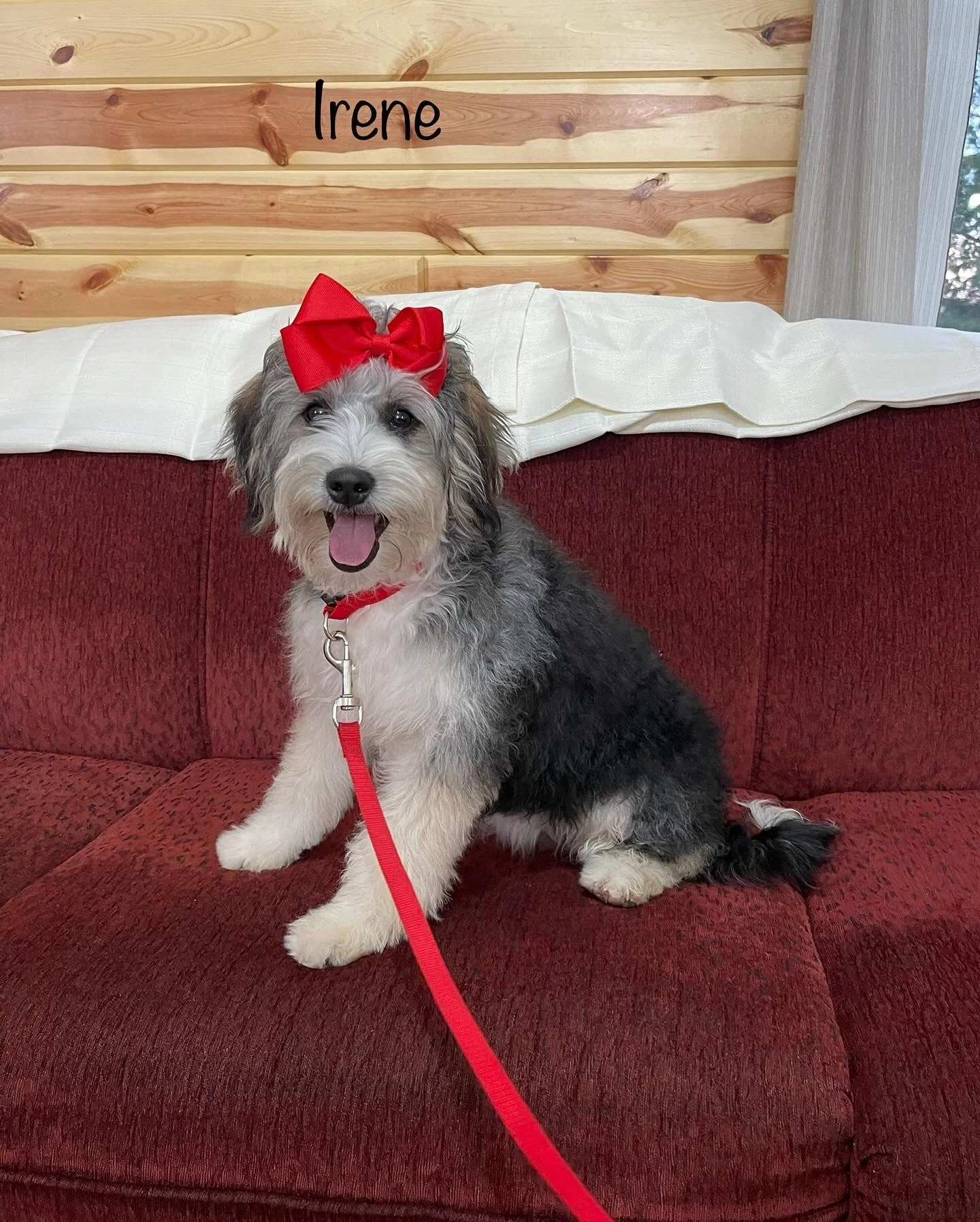 Bree 1359 has found her forever home with Lucas & Whitney Phelps from Muscatine IA, She is a gorgeous Blue Merle & White F1b Tiny / Toy Bernedoodle born Saturday June 21st 2025, She will be 8 weeks old and ready to go home as early as Saturday August 16th. Her parents are Daisy & Prince. Daisy weighs 40lbs and Prince weighs 10lbs. Estimated weight is between 20 & 30 Lbs full grown.