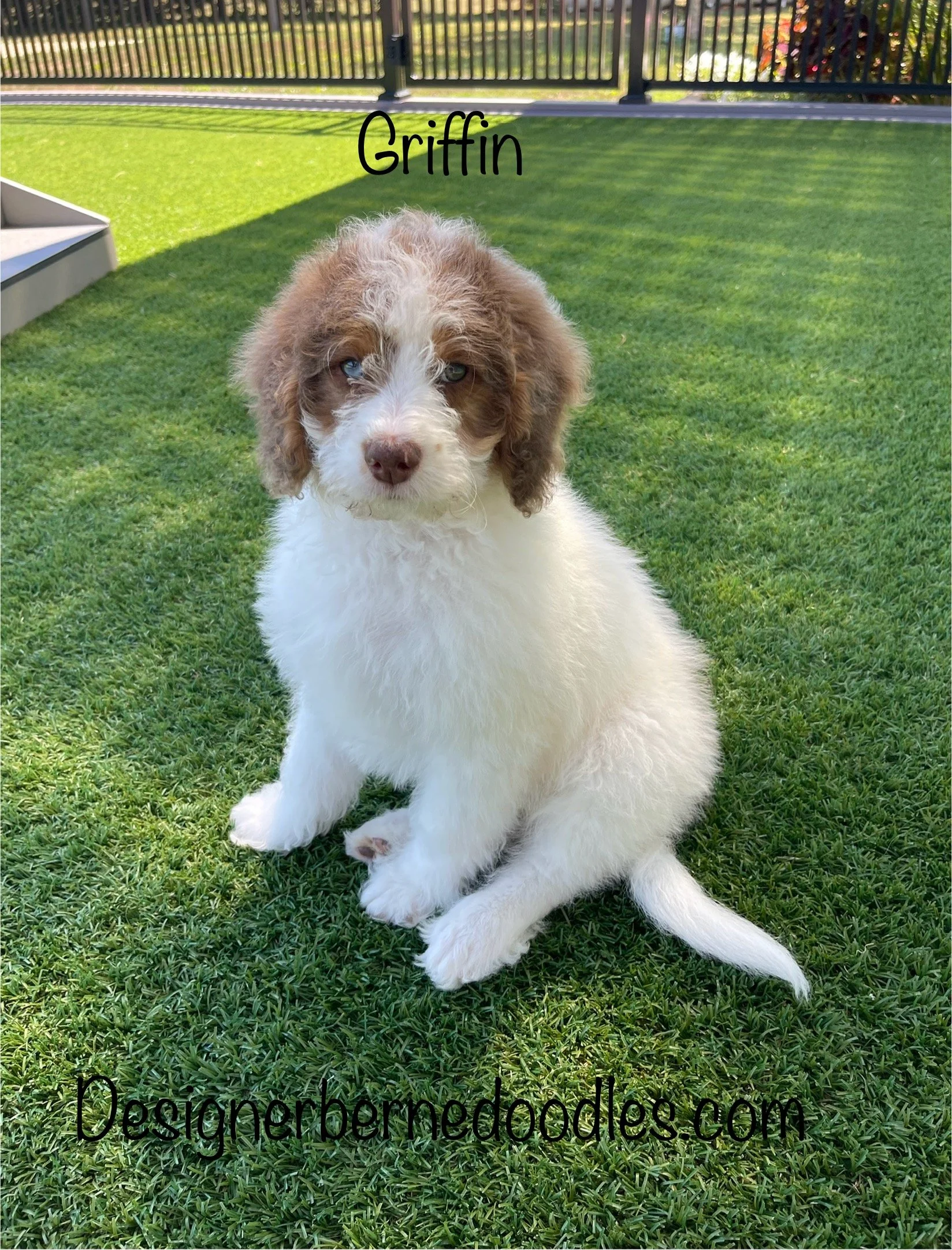 Griffin 0784 has found his forever home with Emilin Rahnavardan from Aliso Viejo CA, He is a handsome Brown & white Merle F1b Tiny / Toy Bernedoodle born Saturday June 21st 2025, He is ready to go home Today!! His parents are Daisy & Prince. Daisy weighs 40lbs and Prince weighs 10lbs. Estimated weight is between 25 & 35 Lbs full grown.