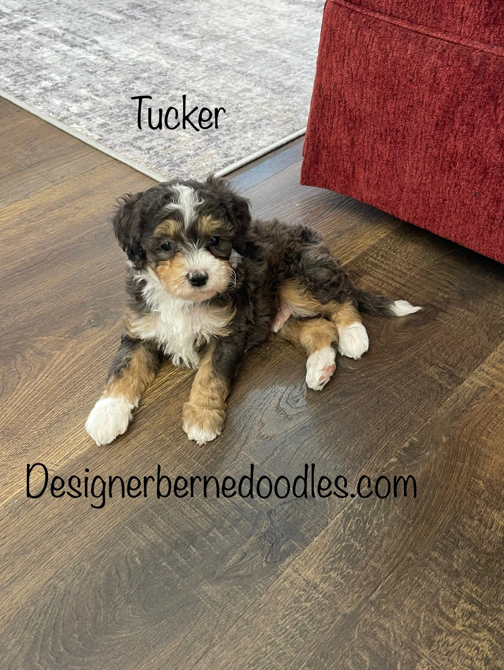 Oreo 8212 formerly Otis has found his forever home with Galen Caldwell & family from Chicago IL, He is a handsome Tri Color F1b Tiny / Toy Bernedoodle born Wednesday Dec 10th 2025, He will be 8 weeks old and ready to go home as early as Wednesday Febuary 4th. His parents are Queen & Jimmy. Queen is an F1 Mini Bernedoodle who weighs 25Lbs and Jimmy is a mini poodle who weighs 13lbs.