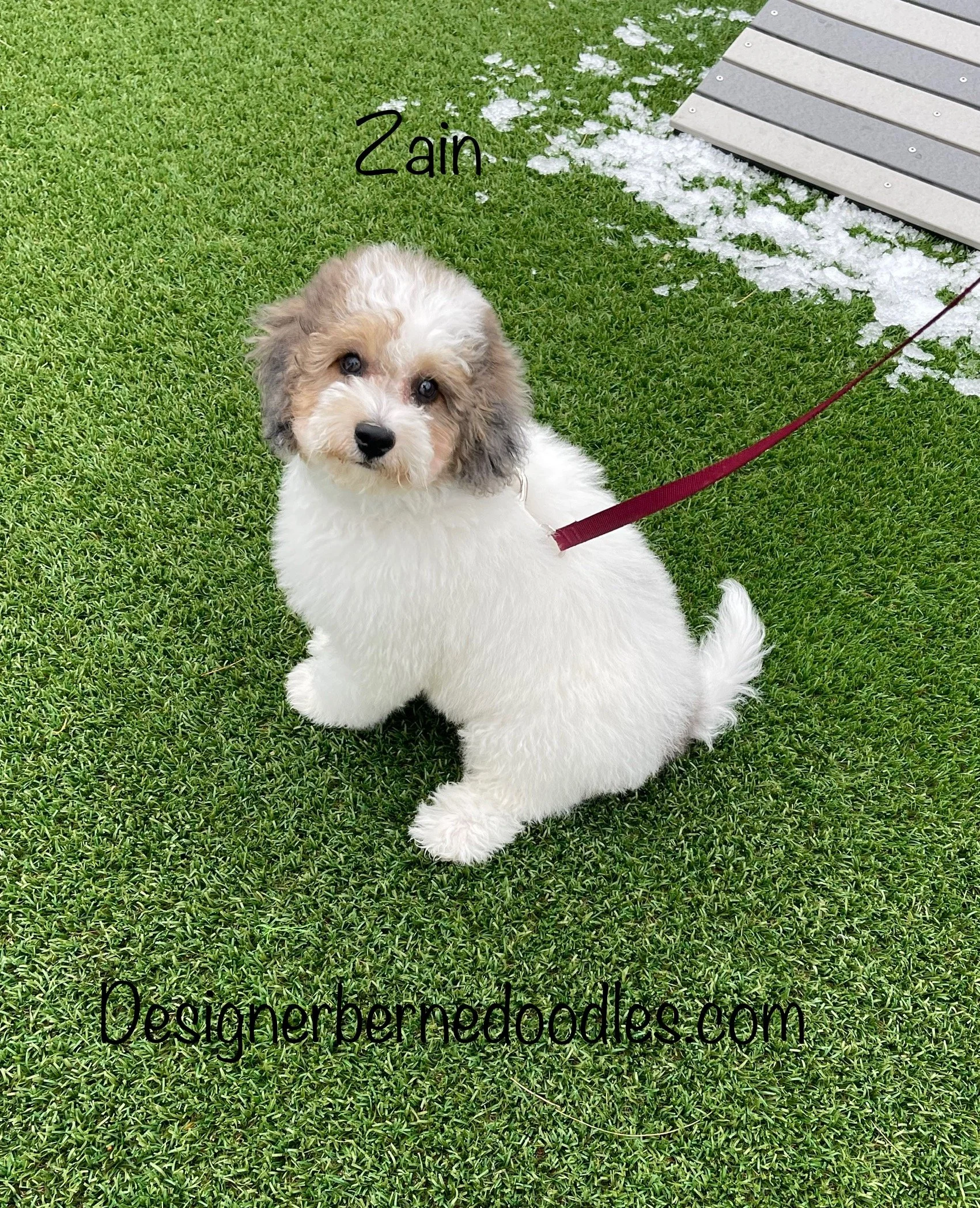 Zain 6903 is a handsome Blue Merle & white F1b tiny Bernedoodle born Friday Dec 19th 2025, He will be 8 weeks old and ready to go home as early as Friday Feb 13th. His parents are Daisy & Prince. Daisy weighs 37lbs and Prince weighs 10lbs. Estimated weight is between 15 to 30 Lbs full grown. He is priced @ $3500. To reserve him with a $500 please text, call or email Ryan @ 2174601313. Email Designerbernedoodles@gmail.com. My venmo username is Ryan-Herschberger and my Zelle username is my email Herschy85.rh@gmail.com