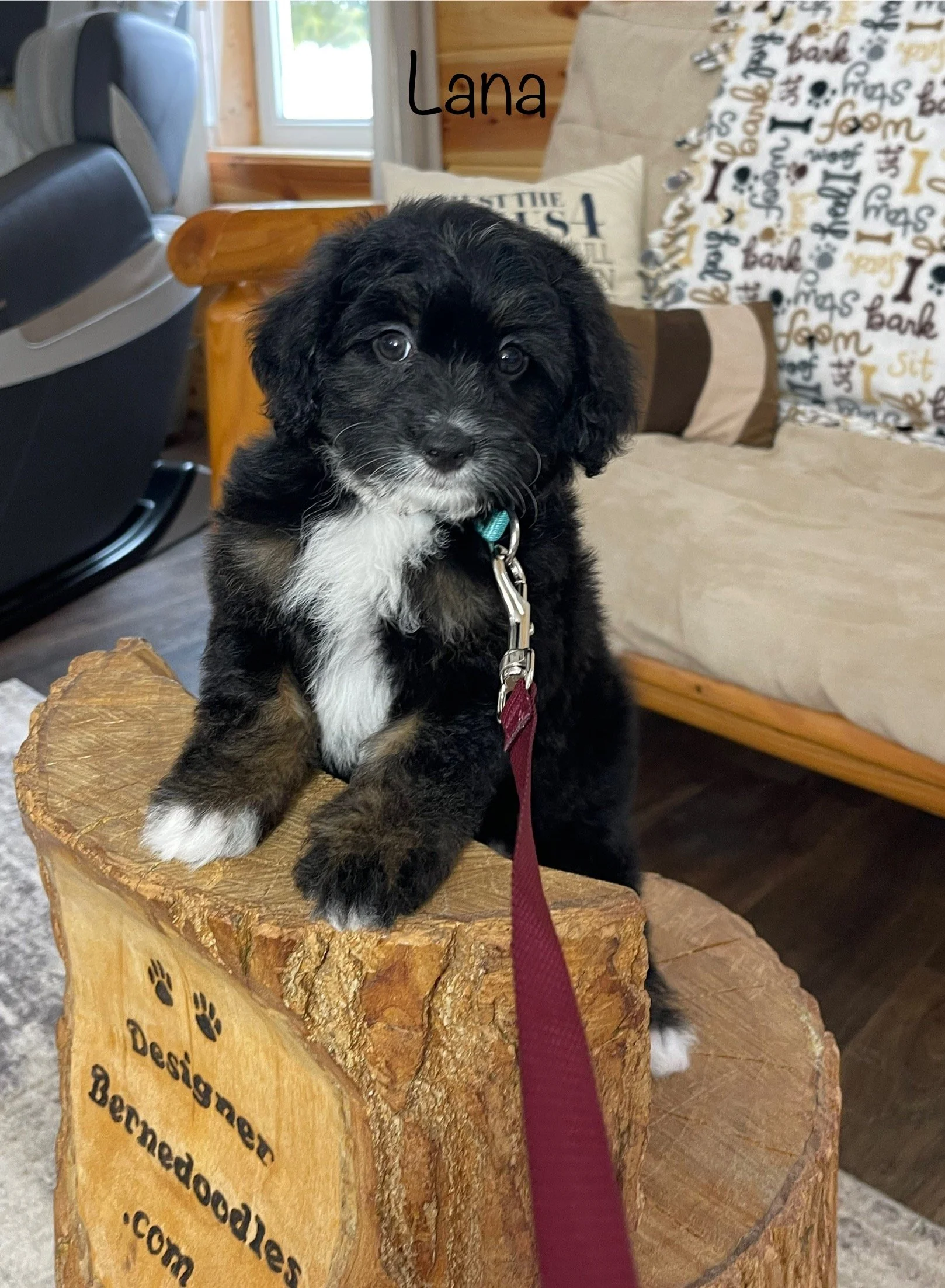 Lana 7667 is a gorgeous Tri Color F1b Tiny / Toy Bernedoodle born Wednesday Dec 10th 2025, She will be 8 weeks old and ready to go home as early as Wednesday Febuary 4th. Her parents are Queen & Jimmy. Queen is an F1 Mini Bernedoodle who weighs 25Lbs and Jimmy is a mini poodle who weighs 13lbs. Estimated weight is between 15 & 25Lbs full grown. She is priced @ $3500. To place a $500 deposit to reserve her text, or call Ryan @ 2174601313.