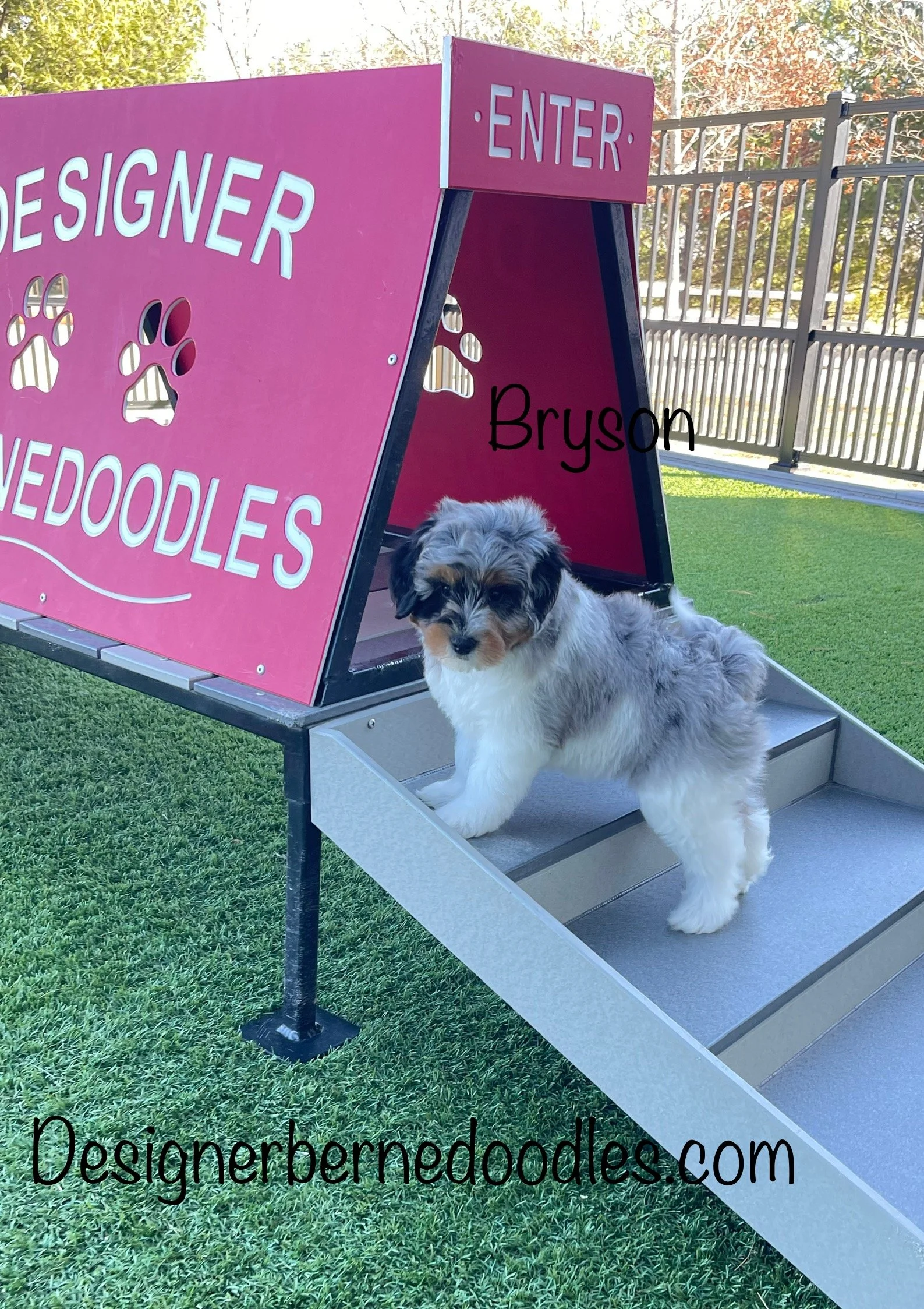 Bryson 6248 is a handsome Blue Merle & white F1b tiny Bernedoodle born Wednesday Dec 24th 2025, He will be 8 weeks old and ready to go home as early as Wednesday Feb 18th. His parents are Fiona & Banjo. Fiona weighs 23lbs and Banjo weighs 17lbs. Estimated weight is between 15 to 30 Lbs full grown. He is priced @ $3500. To reserve him with a $500 please text, call or email Ryan @ 2174601313. Email Designerbernedoodles@gmail.com. My venmo username is Ryan-Herschberger and my Zelle username is my email Herschy85.rh@gmail.com