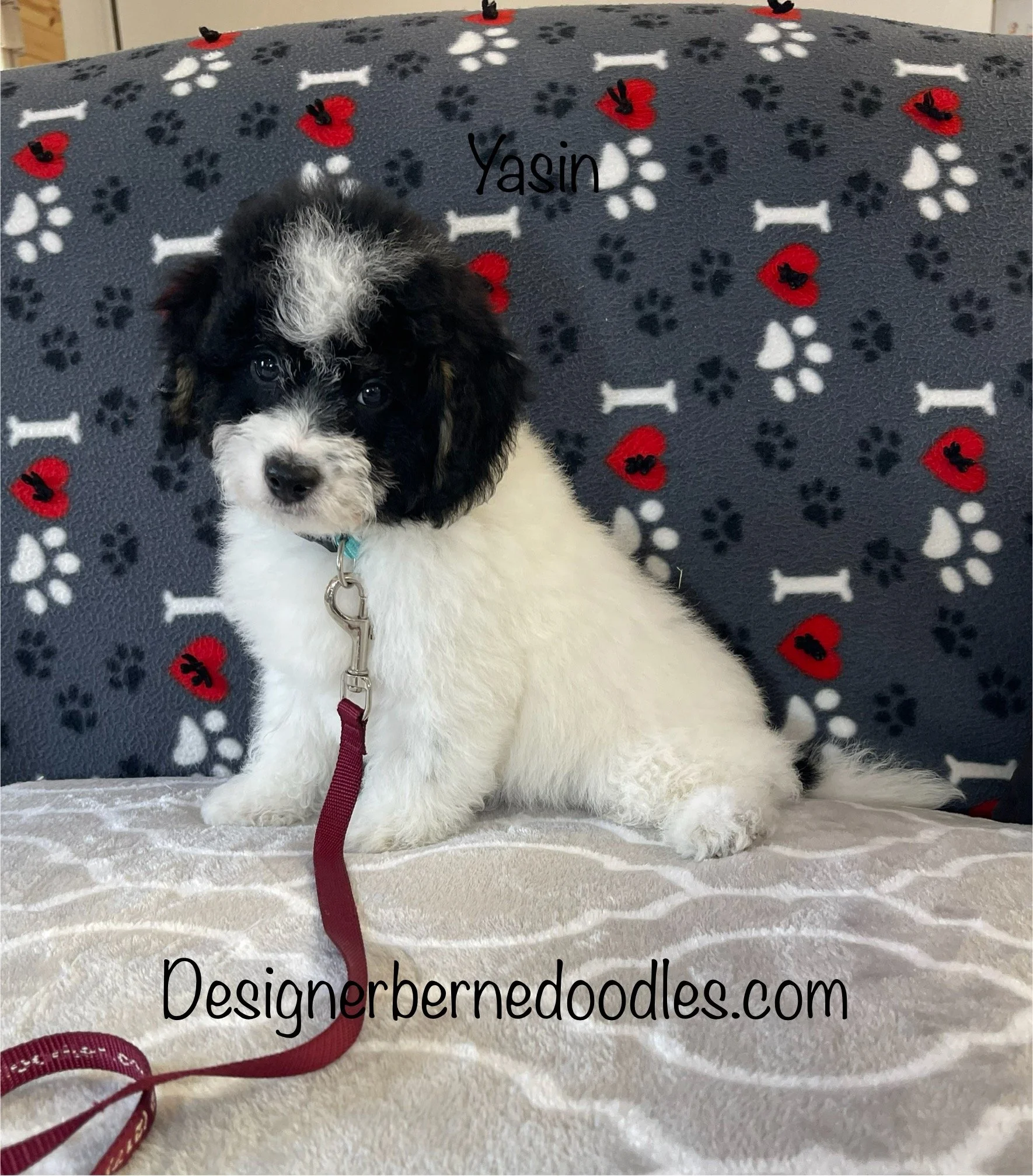 Yasin 6992 is a handsome Black & White Tri Color F1b tiny Bernedoodle born Friday Dec 19th 2025, He will be 8 weeks old and ready to go home as early as Friday Feb 13th. His parents are Daisy & Prince. Daisy weighs 37lbs and Prince weighs 10lbs. Estimated weight is between 15 to 30 Lbs full grown. He is priced @ $4000. To reserve him with a $500 please text, call or email Ryan @ 2174601313. Email Designerbernedoodles@gmail.com. My venmo username is Ryan-Herschberger and my Zelle username is my email Herschy85.rh@gmail.com