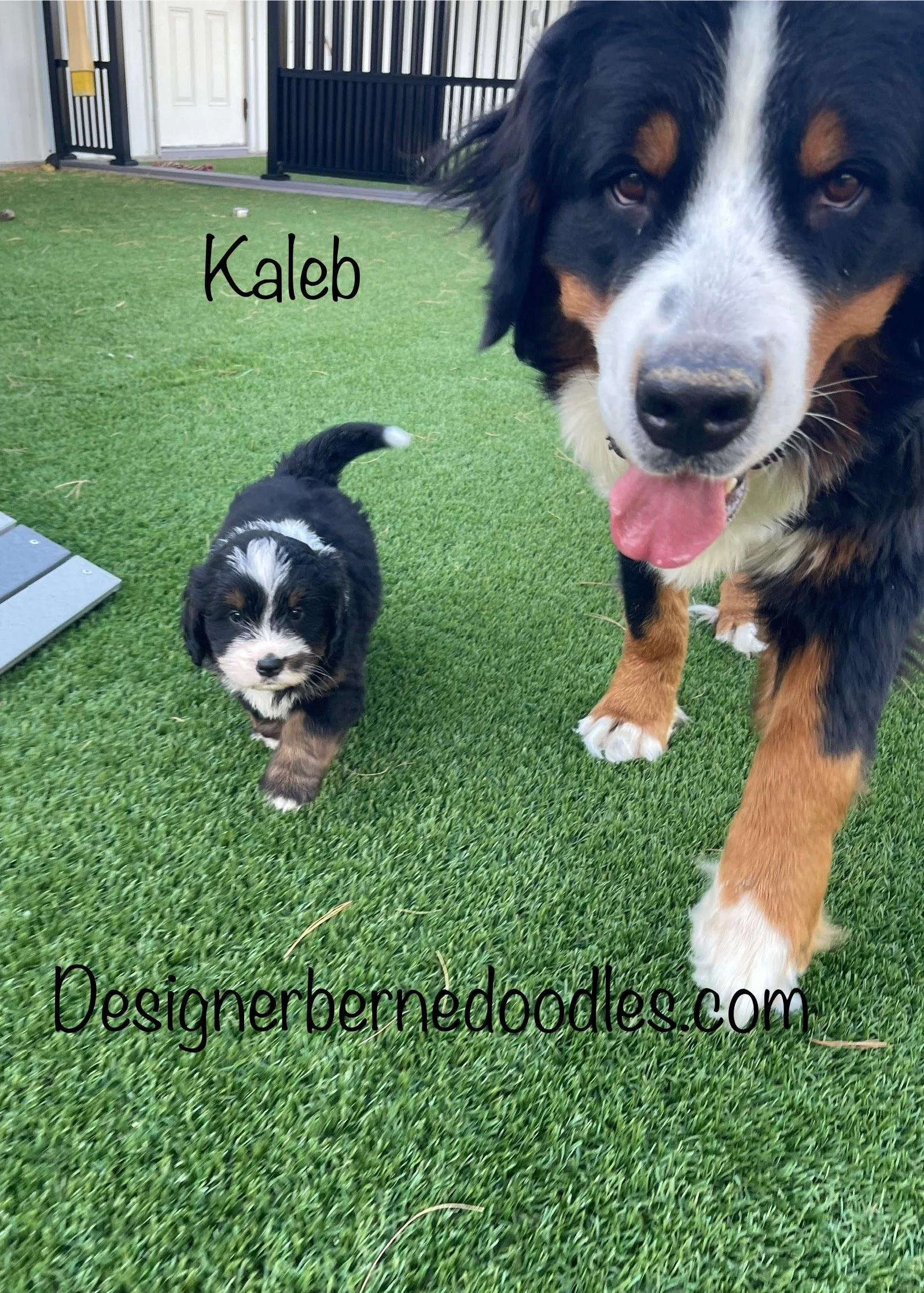 Kaleb 8096 is a handsome Tri Color F1 Mini Bernedoodle born Thursday Sept 18th 2025, He will be 8 weeks old and ready to go home as early as Thursday Nov 13th. His parents are Sophie & Banjo. Sophie weighs 88lbs and Banjo weighs 17lbs. Estimated weight is between 25 to 45 Lbs full grown. He is priced @ $3500. To reserve him with a $500 please text, call or email Ryan @ 2174601313. Email Designerbernedoodles@gmail.com. My venmo username is Ryan-Herschberger and my Zelle username is my email Herschy85.rh@gmail.com