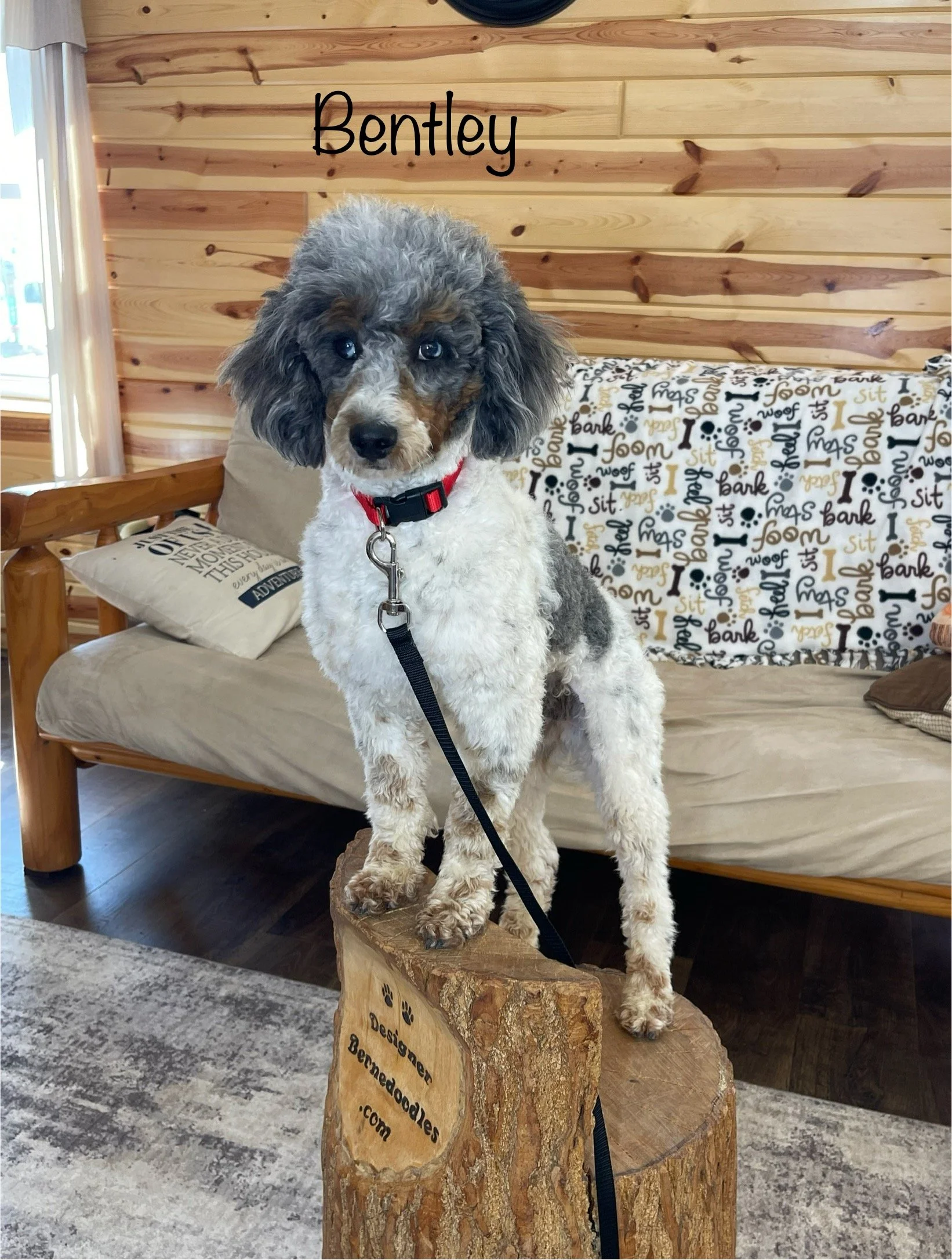 Bentley is our Handsome Blue Merle Mini AKC registered Poodle! He weighs 15lbs. He produces tri color and Blue Merle mini bernedoodles. Bentley is a really sweet boy with a great temperament!