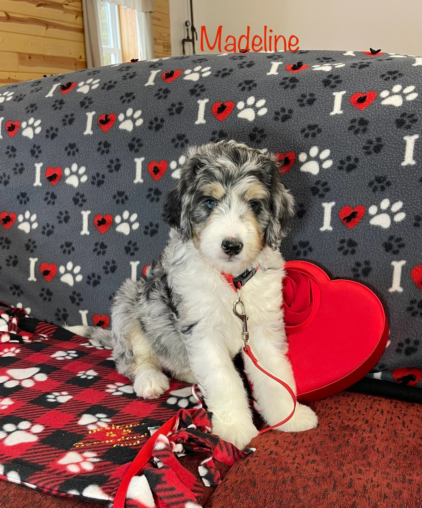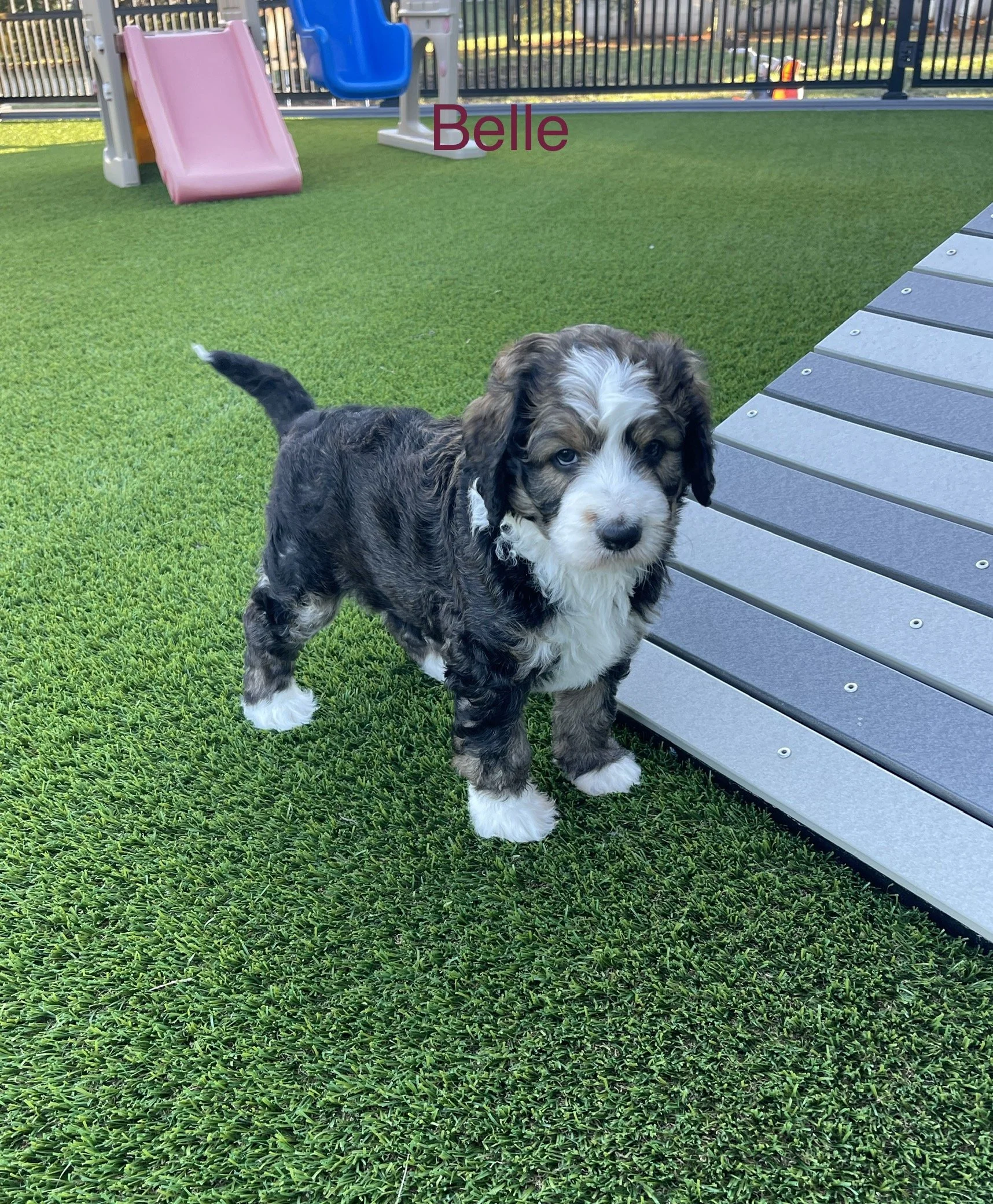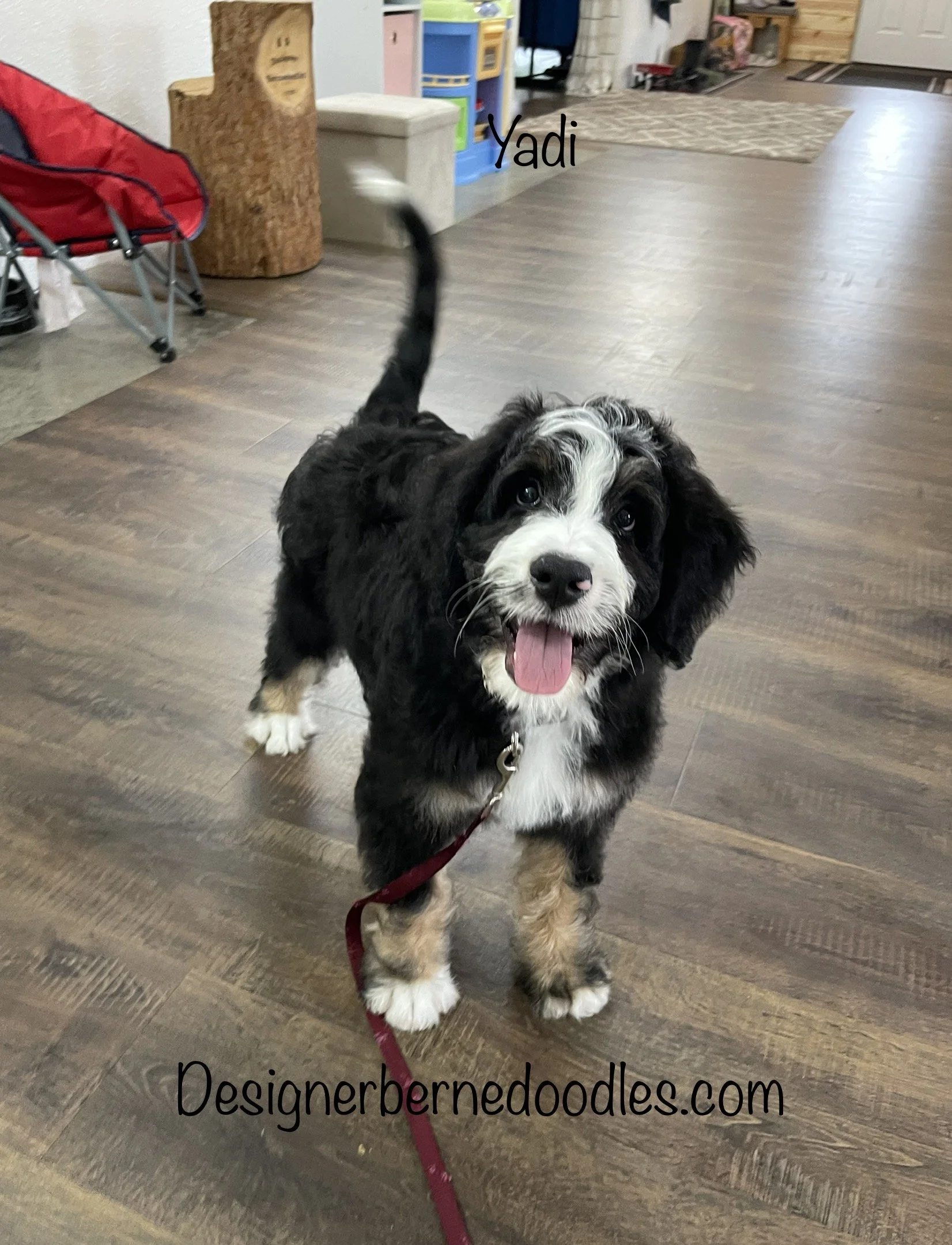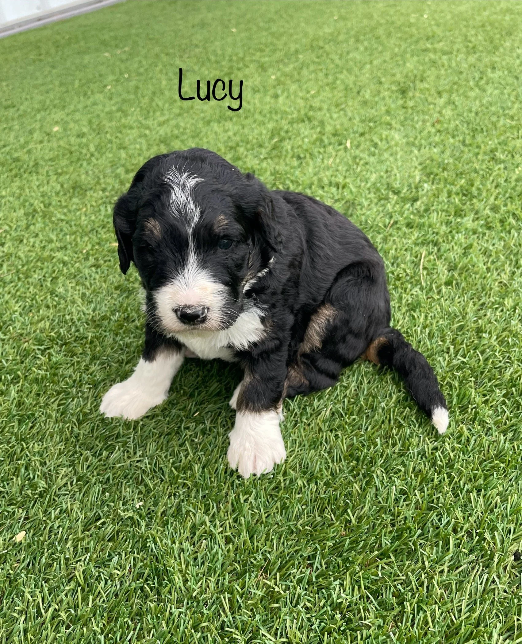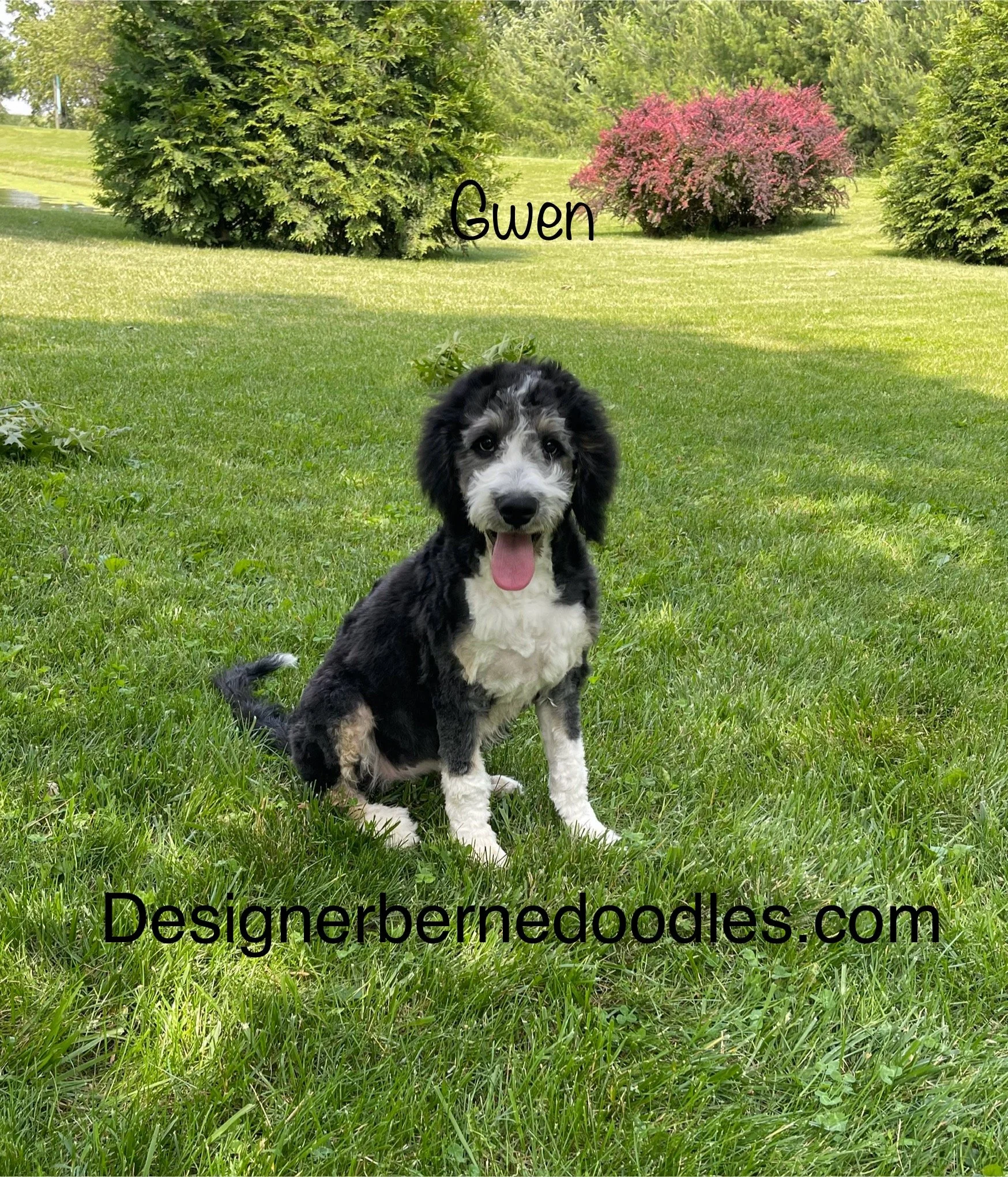 Gwen 2349 has found her forever home with JoEllyn & Brian Johnson from Seneca IL is a gorgeous Tri Color F1 Standard Bernedoodle born Feb 24th and is available to go home as early as April 21st. Her parents are Crystal & Ty.