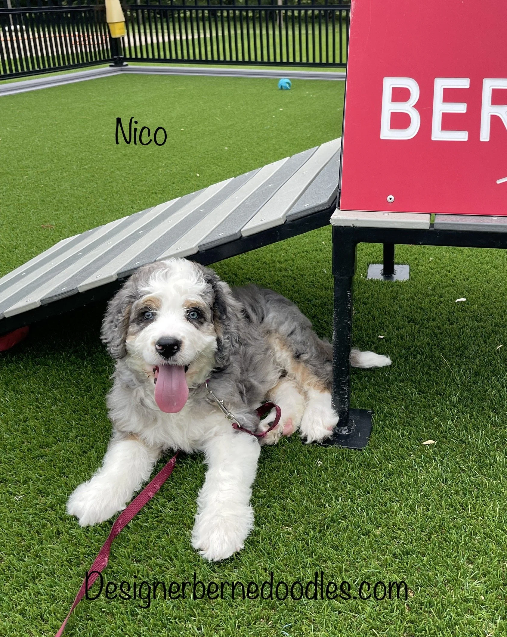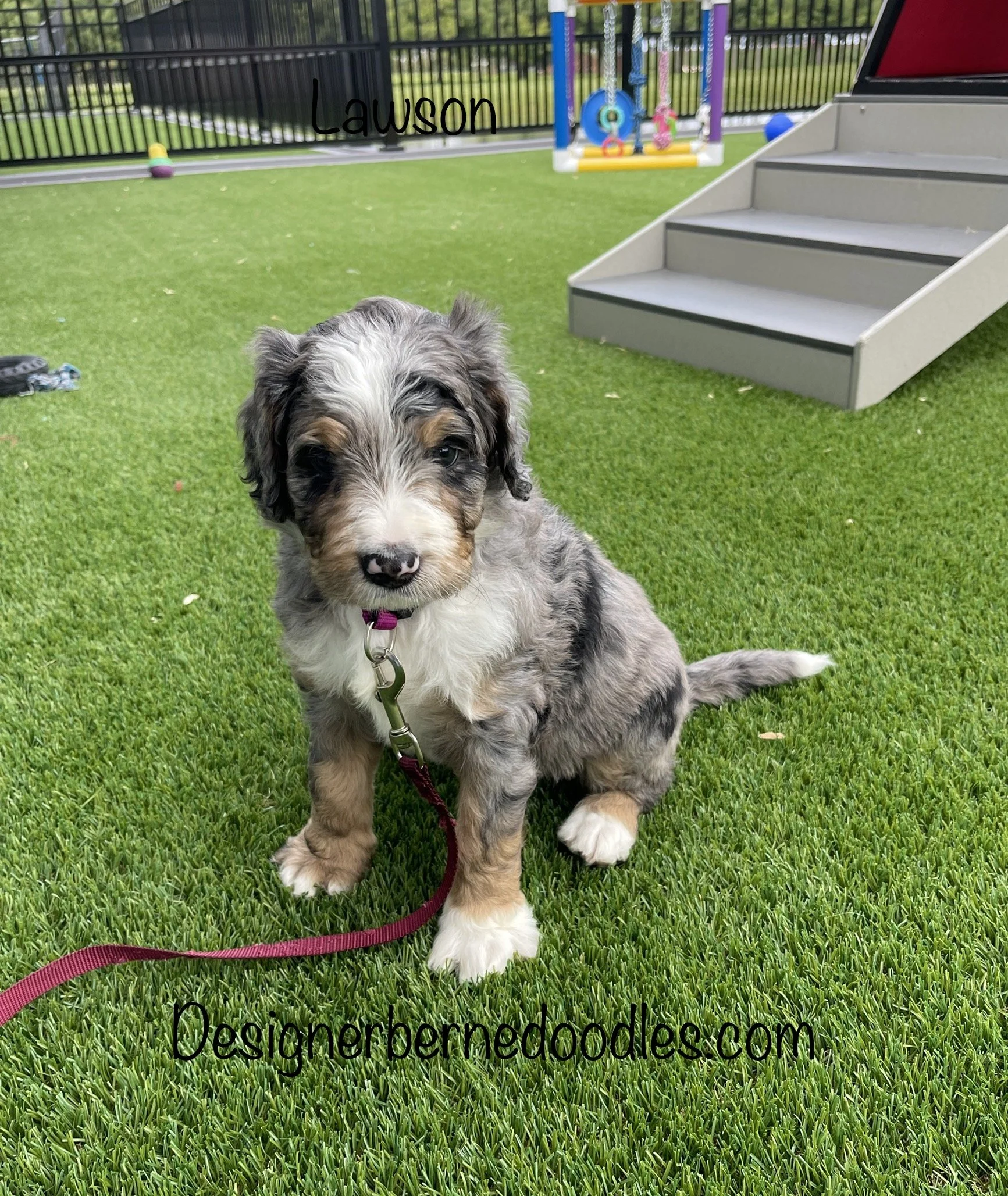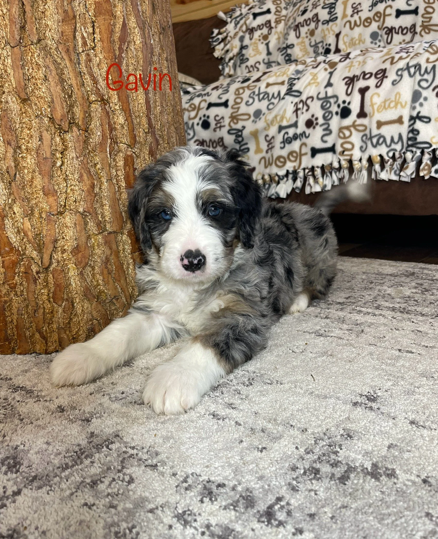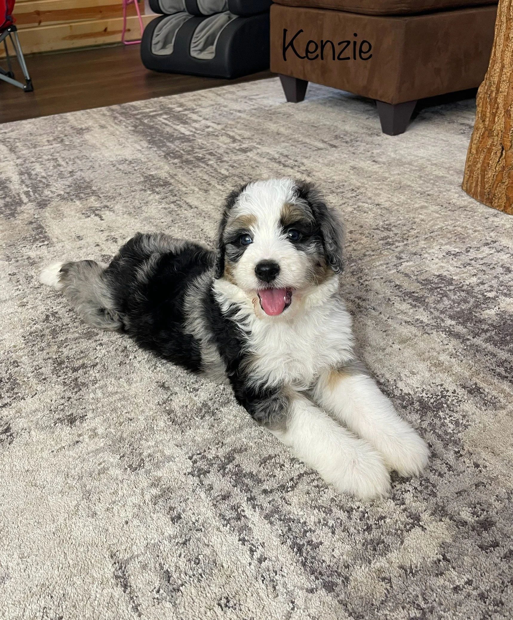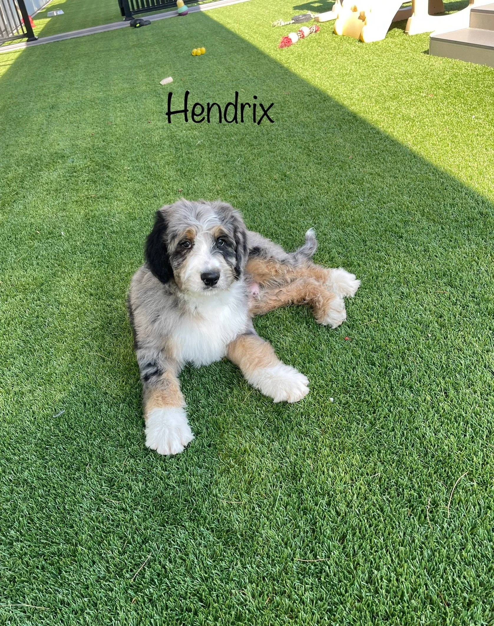 MoJo formerly Jace 7763 has found his forever home with Ella Weidner from Los Angeles CA is a handsome Blue Merle F1 Standard Bernedoodle born Feb 24th and is available to go home as early as April 21st. His parents are Crystal & Ty.