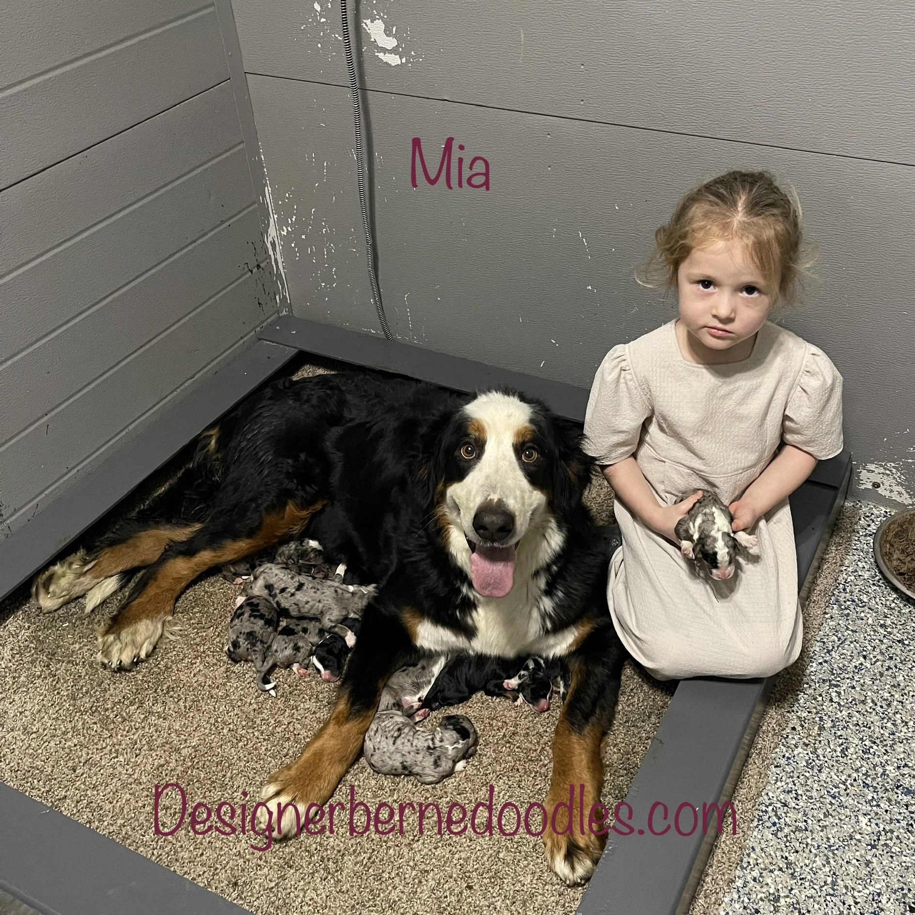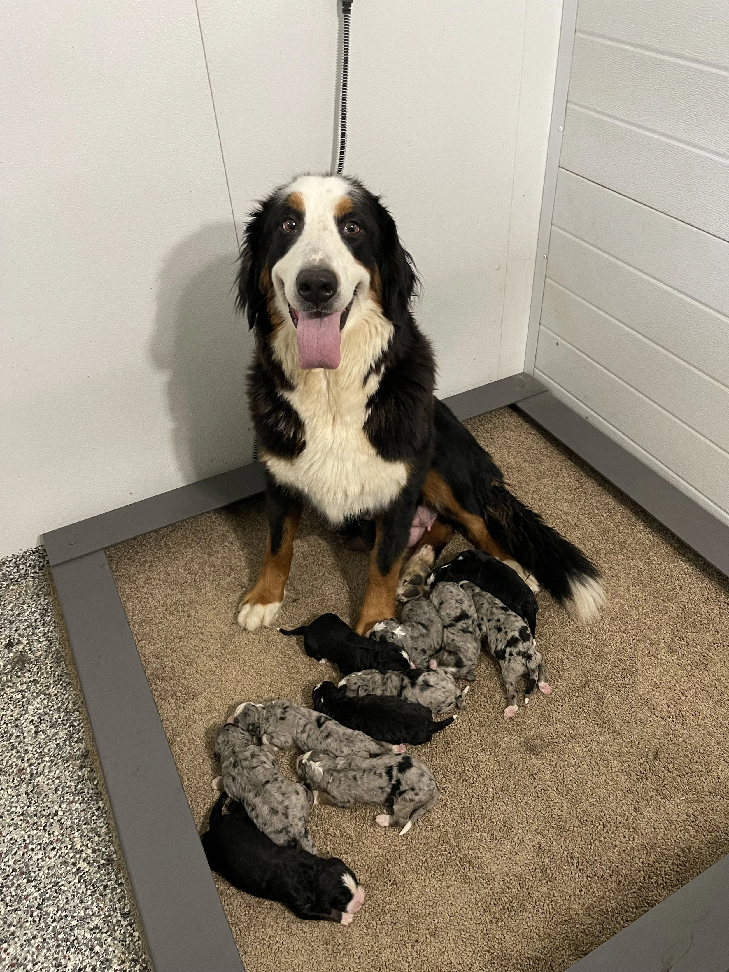 Mia & Ty have a gorgeous litter of F1 Standard Bernedoodles born Wednesday Sept 20th and are available to go home as early Wednesday November 15th 2023! 9 girls and 2 boys!! They will be approximately 70 to 100lbs full grown.
