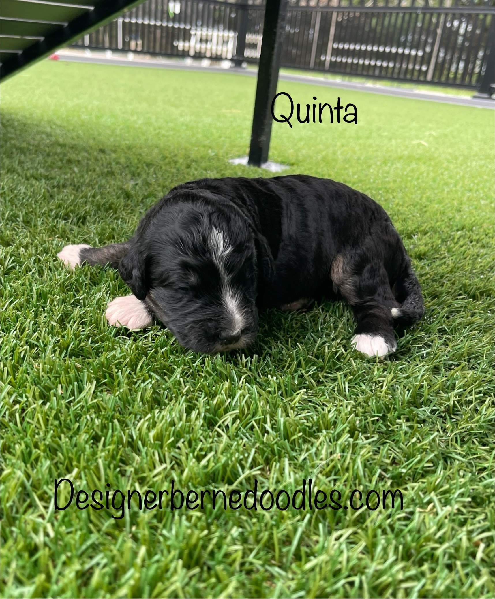 Quinta is a gorgeous F1 Tri Color Standard Bernedoodle born Wednesday April 1st 2026, She is ready to go home as early as Wednesday May 27h! Her parents are Crystal & Ty . Crystal weighs 80lbs and Ty weighs 70lbs. Estimated weight is between 70 to 90 Lbs full grown. She is priced @ $3500. You can text call or Email Ryan @ 2174601313 for more info or to place a $500 deposit. My Venmo username is Ryan-Herschberger or my Zelle username is my email Herschy85.rh@gmail.com