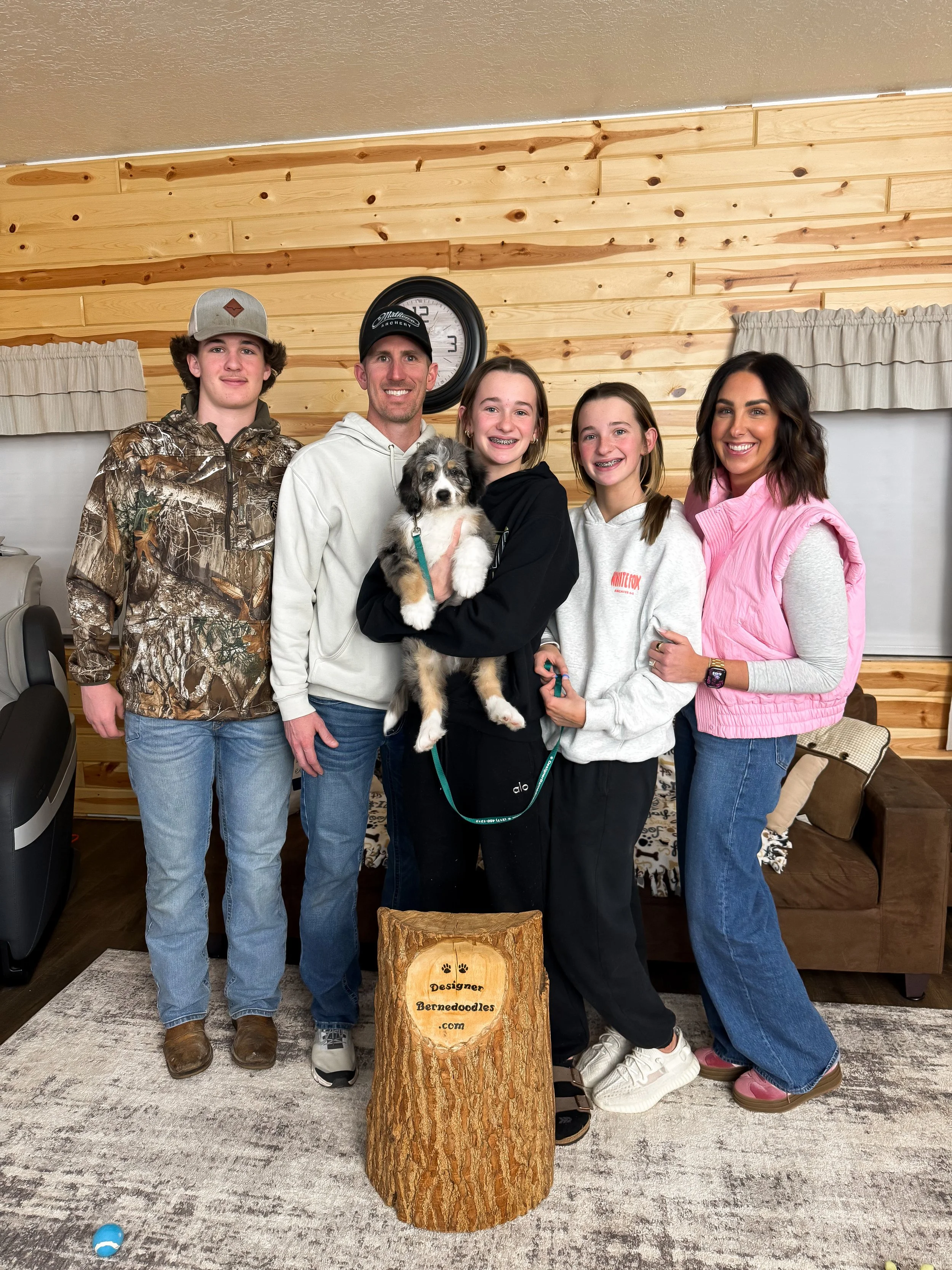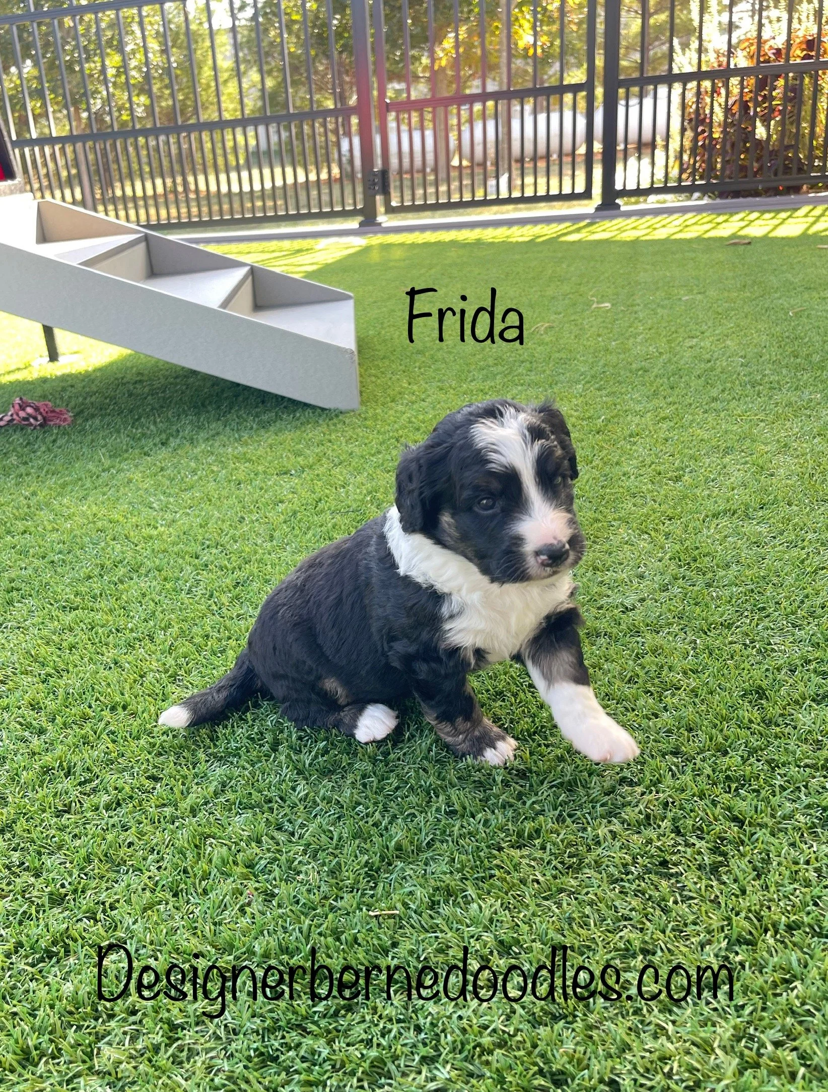 Frida 8233 has found her forever home with Reese & Logan Senko from Panama City Beach FL, She is a gorgeous F1 Standard Bernedoodle born Monday Sept 15th 2025, She is ready to go home as early as Monday November 10th! Her parents are Crystal & Ty . Crystal weighs 80lbs and Ty weighs 70lbs. Estimated weight is between 70 to 90 Lbs full grown.